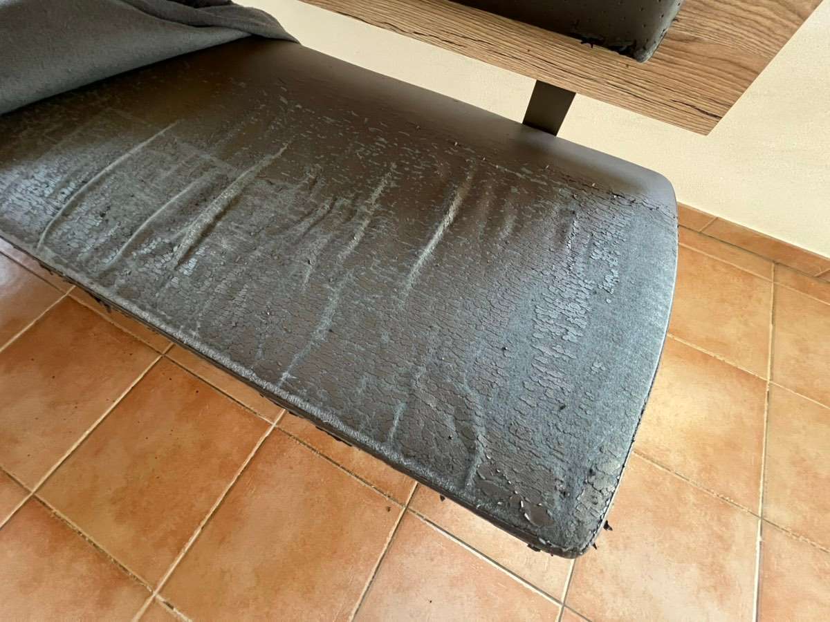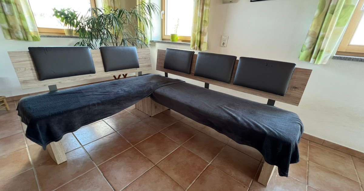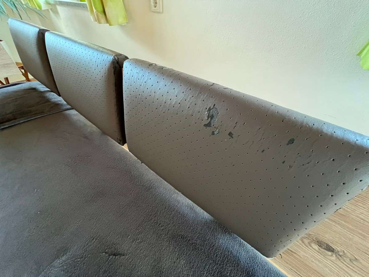 Verschenke eine Eckbank. Das Holz ist in einwandfreien Zustand, leider blättert der Bezug stark ab. Ideal also für einen Bastler zum Neu Beziehen Die Rückenteile sind verschiebbar oder auch zum Abnehmen Maße 155x195cm Passend gäbe es noch einen Tisch...
