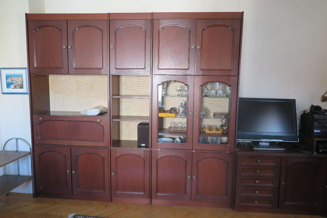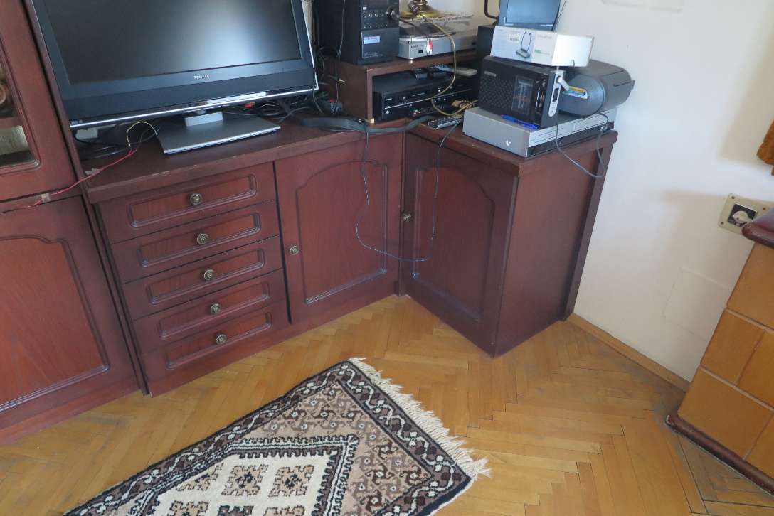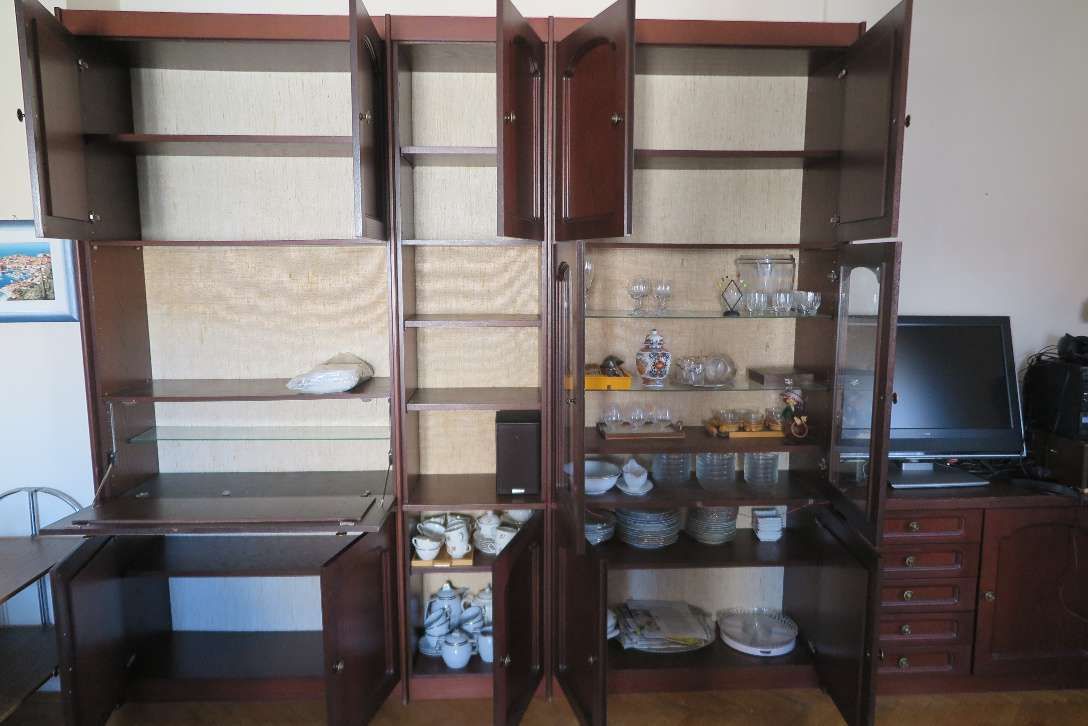 Schöner Wohnzimmerschrank laut Fotos wegen Wohnungsauflösung abzugeben. ( Selbst abzubauen ) Hoher Teil 257 cm lang und 235 cm hoch. Eckteil 150 cm / 100 cm lang und 76 cm hoch.