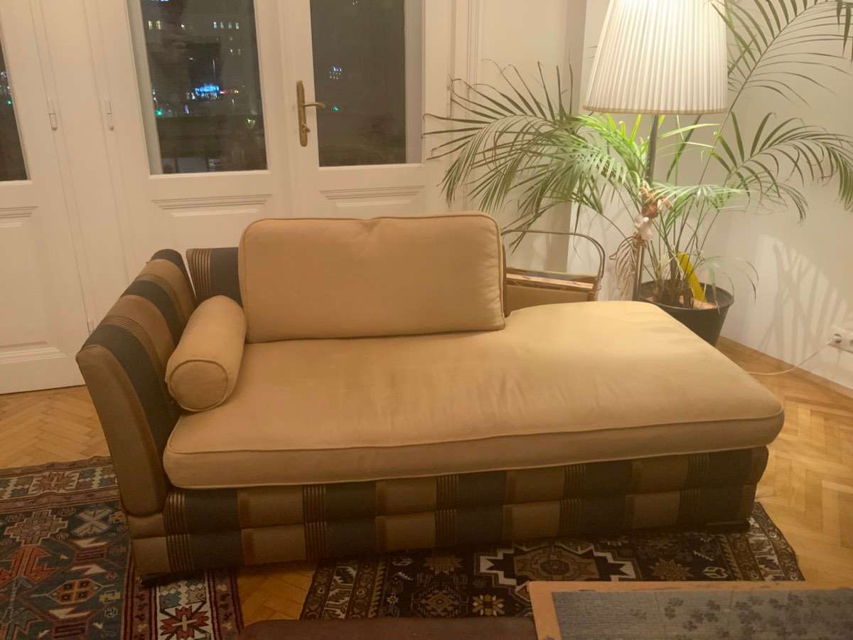 gegen Selbstabholung abzugeben: zwei Sofas (Dreier Sitzbank und Chaiseongue) die beiden Sofas sind alt und gebraucht, die Kanten sind teilweise abgestoßen und die Polster auch an den Ecken abgewetzte, grundsätzlich ist das Sofa aber sehr stabil und auch...
