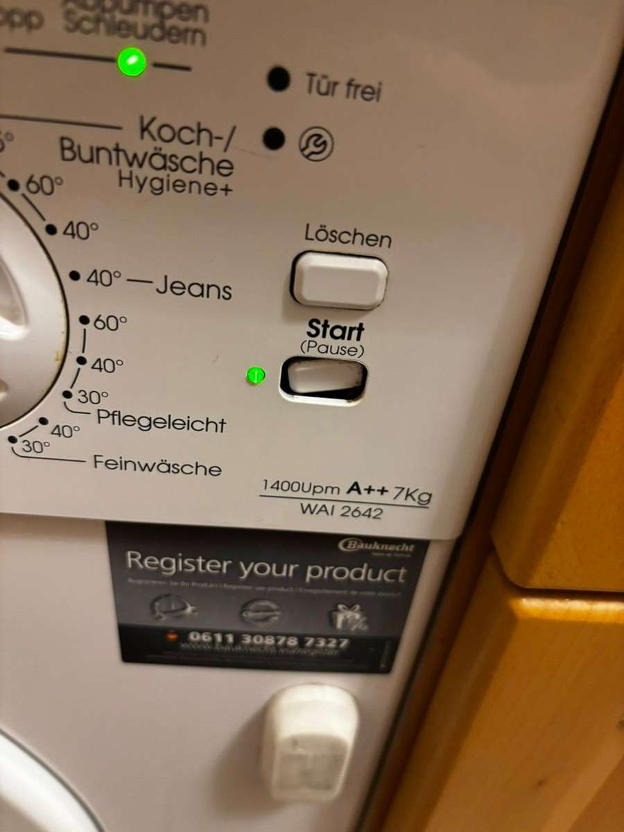 Funktioniert super nur türknopf ist abgefallen und start knopf hängr rein aber funktioniert alles. Verschenke es da mich die waschmaschine in der küche stört und ich eine waschküche habe