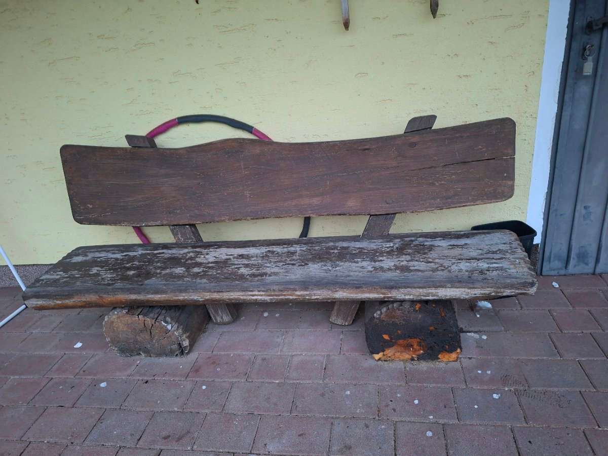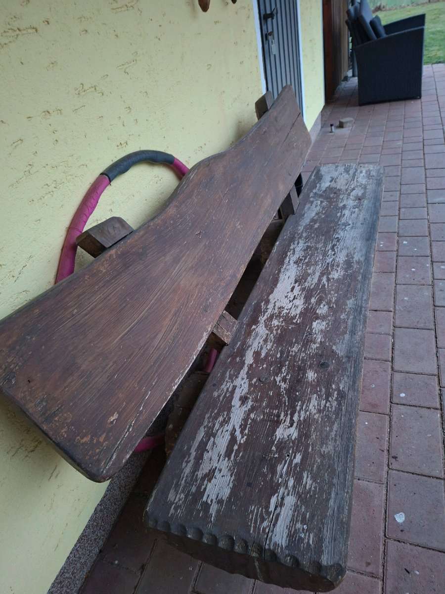 Massive, reparaturbedürftige Holzbank