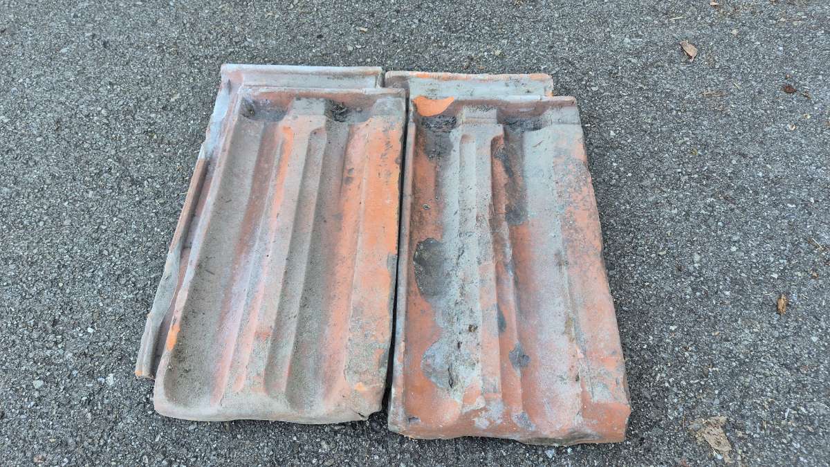 Gebrauchte Dachziegel, die wohl als Reserve aufbewahrt wurden. Zu verschenken, ansonsten kommen sie ins ASZ.