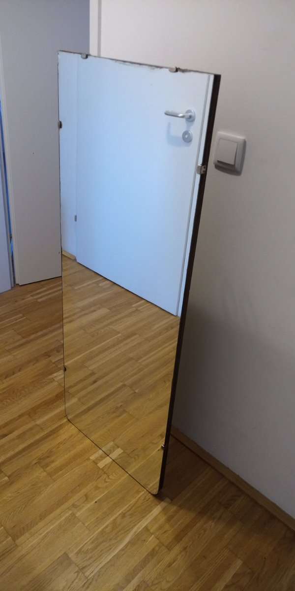 Verschenke Spiegel zum aufhängen. Breite: 50cm Höhe: 130cm Eine Ecke hat eine leichte beschädigung. Siehe Fotos.