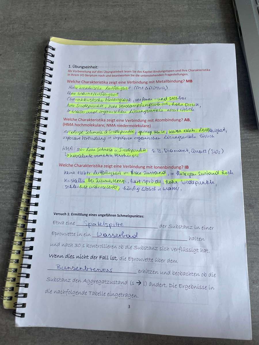 Skripten Chemie siehe Bilder - teilweise ausgefüllt