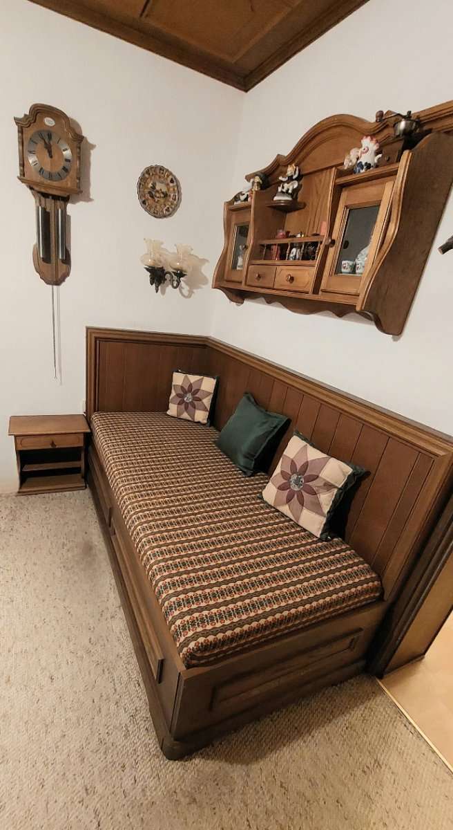 Rustikales Sofa/Bett mit Holz-Wandverbau z.B. für Stüberl oder Hütte zu verschenken. 1,85 cm Länge, 0,88 cm Breite Gebrauchter Gegenstand aus Nichtraucherhaushalt ohne Haustiere. Bitte zur Selbstabholung ehest möglich.