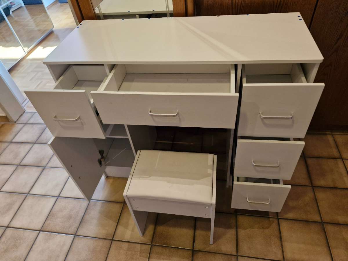 Schminktisch Schreibtisch 100cm mit Hocker lt. Foto, wackelt ein wenig, Schrauben gehört angezogen, sonst voll funktionsfähig 100cm lang, 40cm tief, 80cm hoch