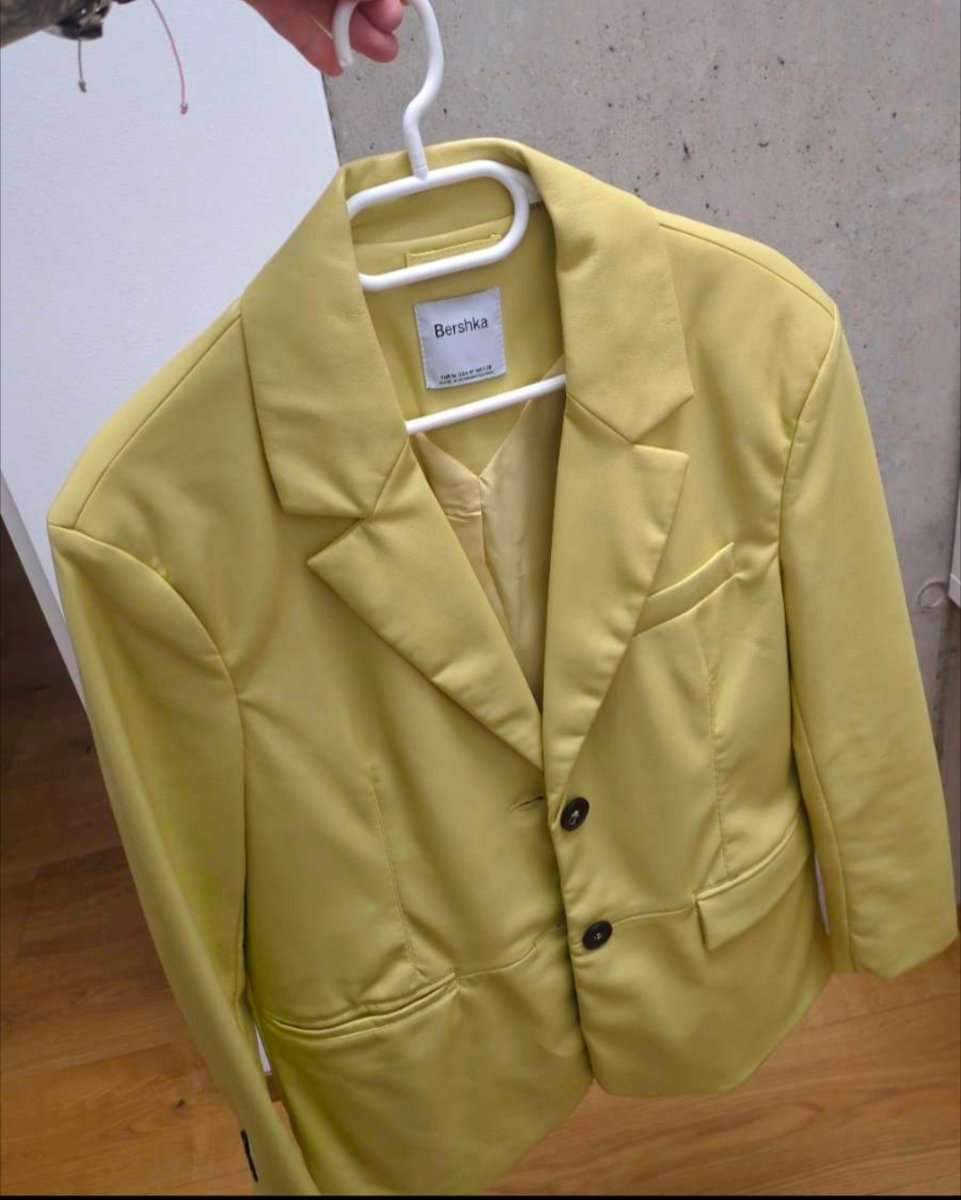 Bershka Kunstleder gelb Blazer Jacke