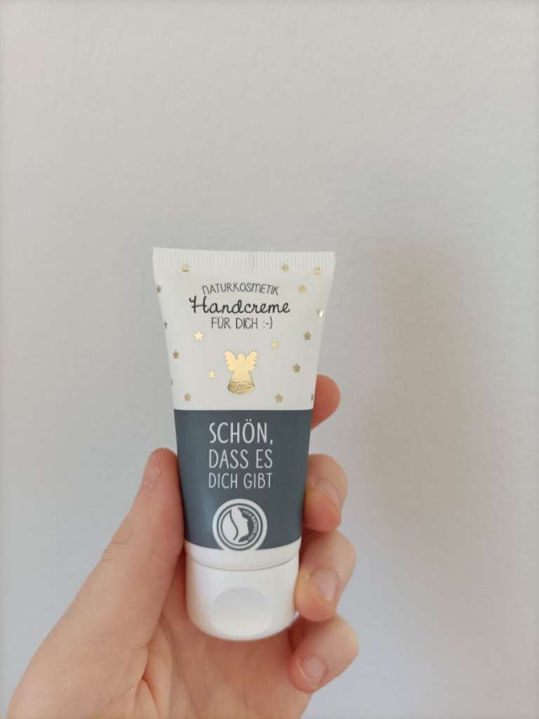 Naturkosmetik Handcreme, Handpflege, Lotion, Schön dass es dich gibt, Geschenk, klein, 30ml, Reisegröße, Weihnachtsedition, Engel, Sterne, Gold,