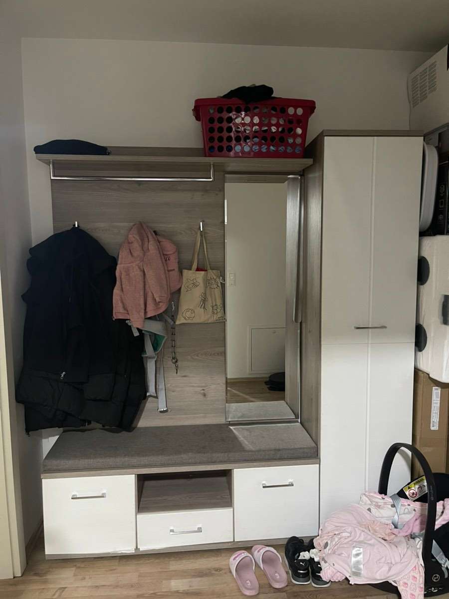 Ganze Garderobe zu verschenken. Leichte Gebrauchsspuren unten bei der Lade und bei der Tür. Es macht noch super seine Arbeit vlt. hat der ein oder andere Freude daran. Ist bitte selber zum abbauen und abholen. :)