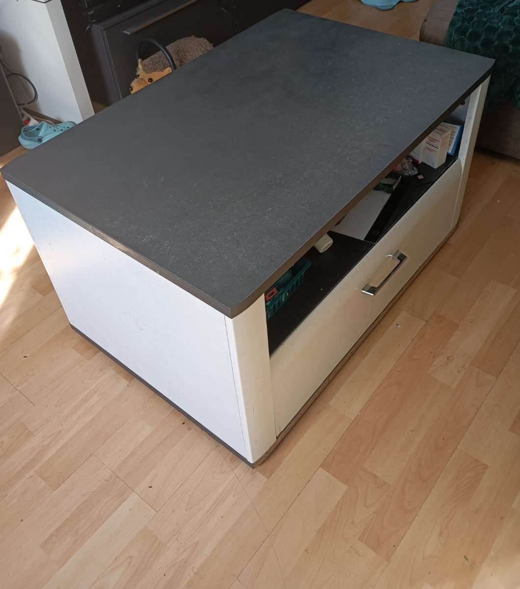 Couchtisch mit Lade Unten fehlt eine Furnier Leiste Breite 80cm Tiefe 60cm Höhe 50 cm Wird morgen früh entsorgt Abzuholen ab sofort