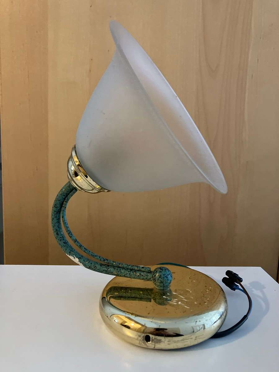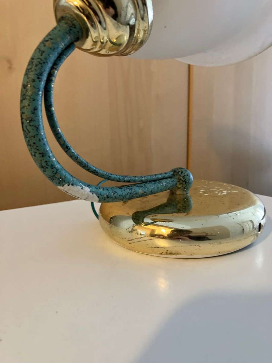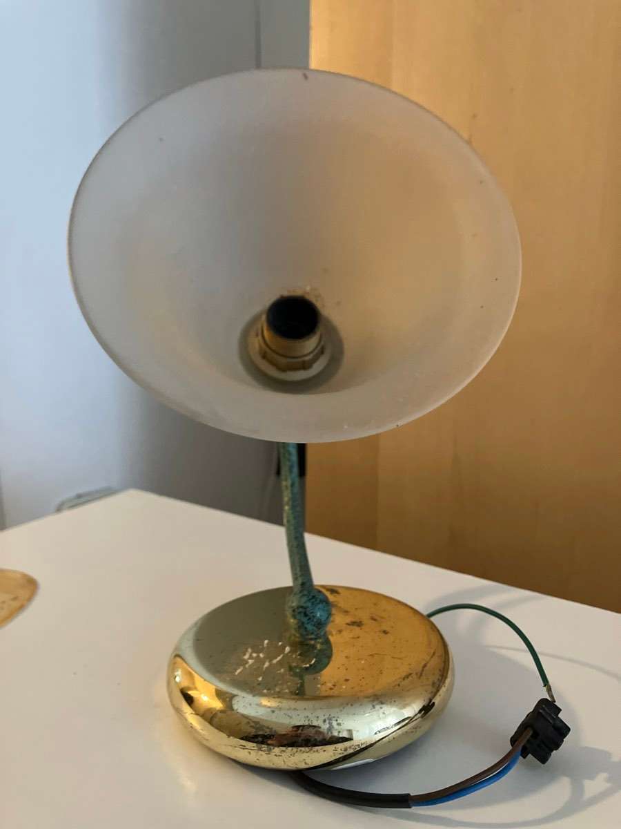 Die Lampe hat viele Gebrauchsspuren und Flecken, aber durchaus Charme - sie wegzuwerfen wäre schade, vielleicht findet wer gefallen dran.