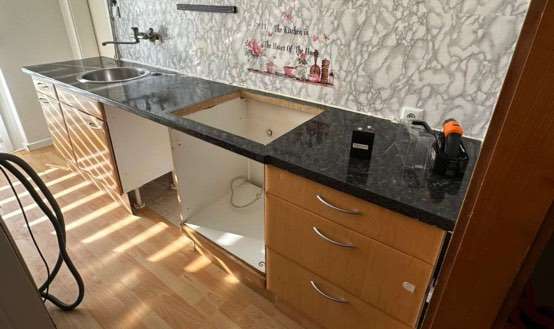 Foto 3 Arbeitsplatte mit Spüle ca 286x60 1 Hoher Schrank 1 Stehschrank 2 Hängeschränke E Herd Abholbereit