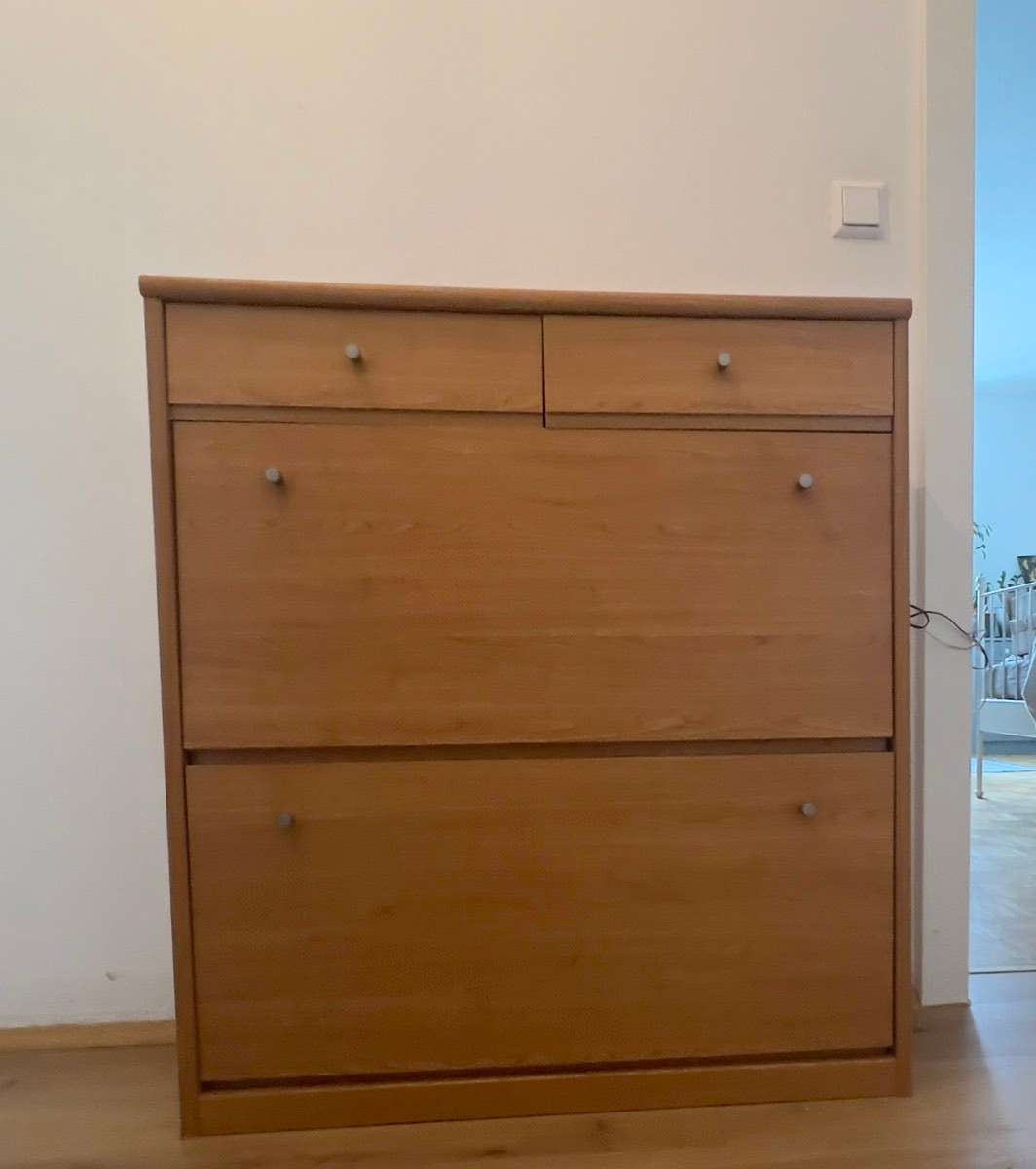 Verschenke das Kastl, falls es jemand möchte. Ansonsten entsorge ich es spätesten morgen oder übermorgen , da mein neues kommt und ich keinen Platz habe. Hab es von der Vormieterin übernommen, bei den Fächern fehlen die Zwischenbretter, aber man kann...
