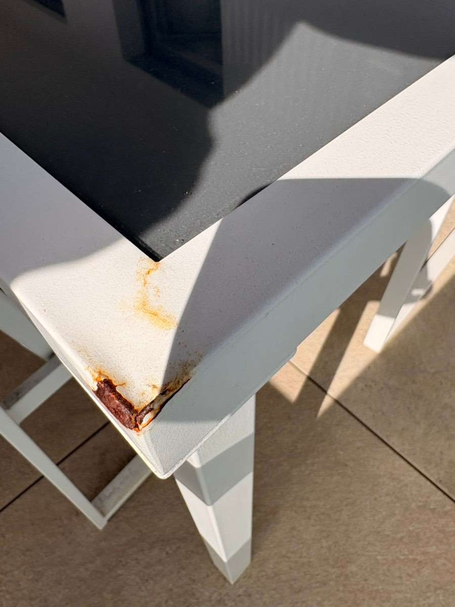 Verschenke sitzgruppe mit Beschädigungen beim Metall siehe Fotos. Nur Selbstabholung !!!!!