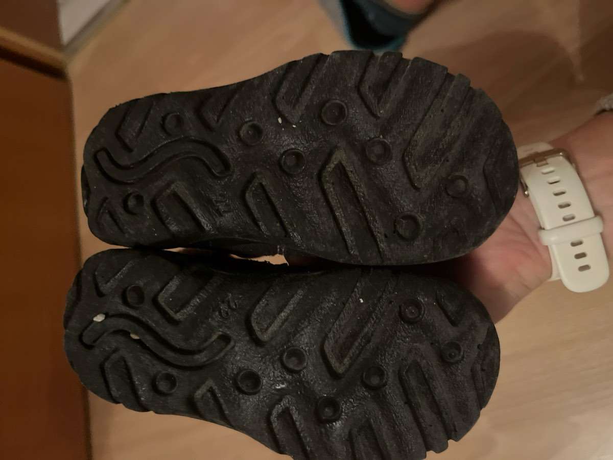 Verschenke Winterstiefel Gr. 28, Schrift löst sich über der Sohle vom Stoff.