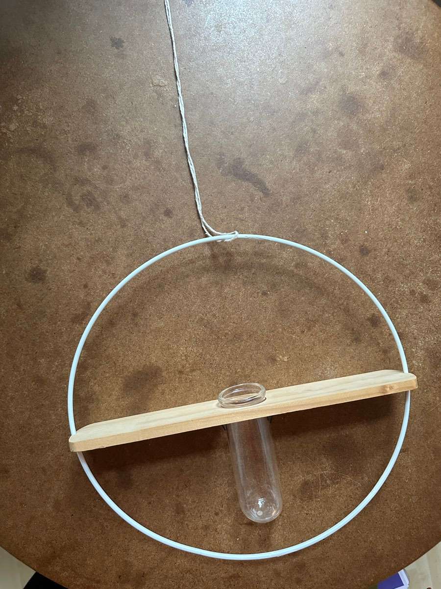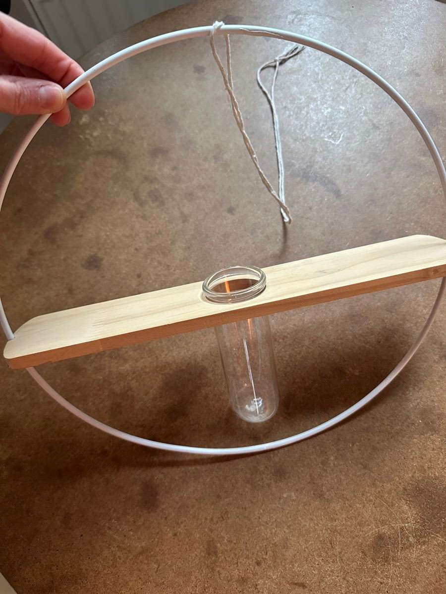 Dekoring mit Glasvase zum Aufhängen (habe eine Schnur daran gemacht, damit man es aufhängen kann)