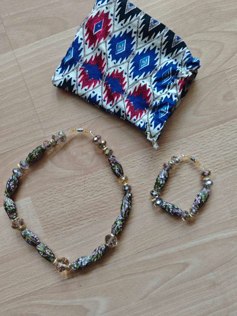 Hat eine Freundin in Togo (Afrika) gekauft. Material weiß ich daher nicht. Nie getragen.