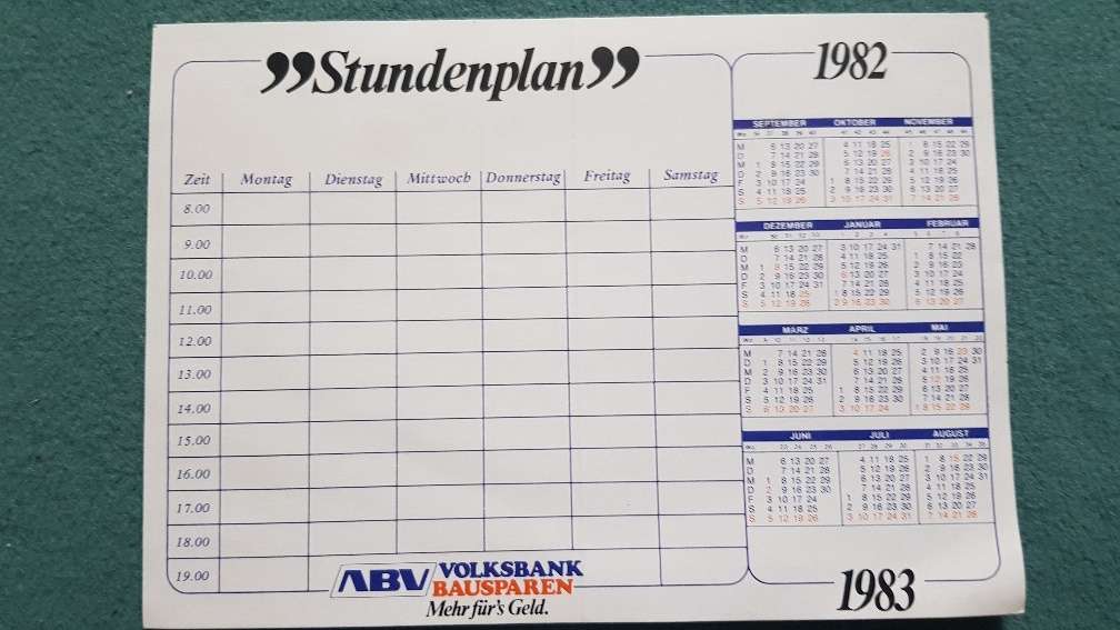 Stundenplan, 1982 1983 ABV Volksbank Bausparen, vintage, für Sammler,
