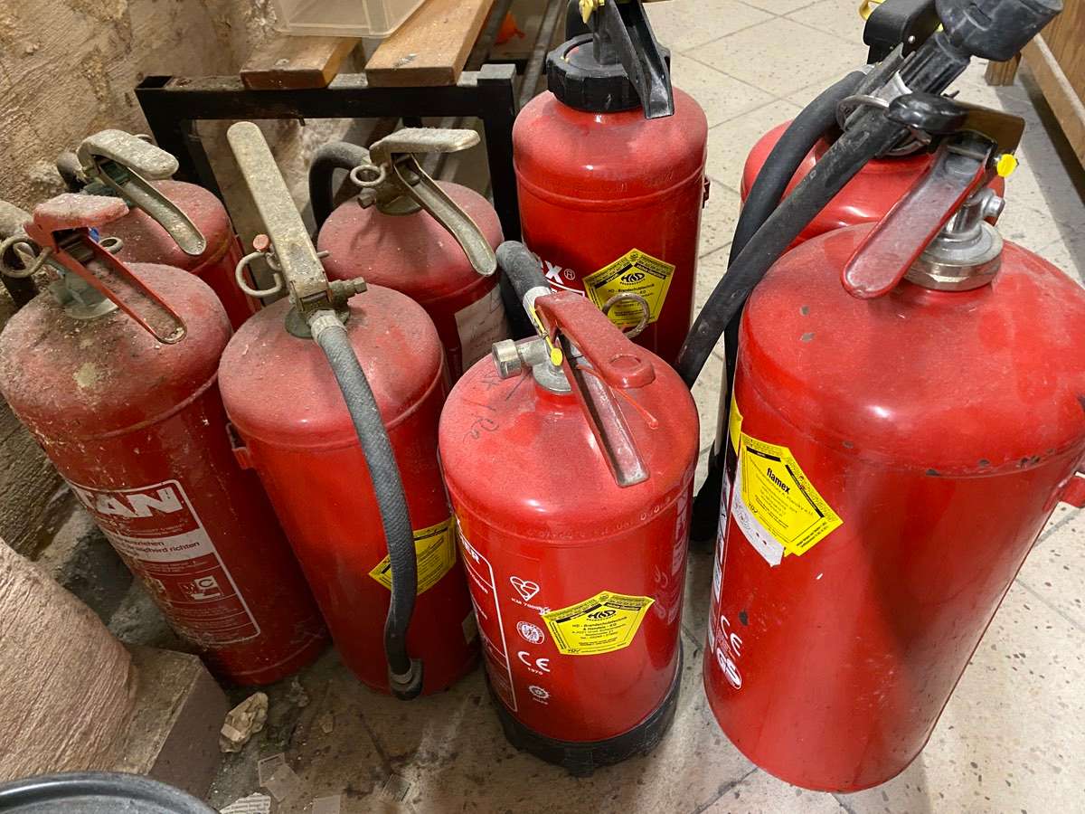 Alte Feuerlöscher zu verschenken. Abzuholen in der Bäckerstraße 16, 1010 Wien.