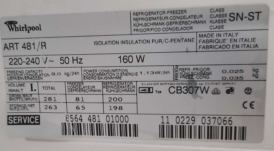 Verschenke eine Einbau-Kühl-Gefrierkombi (ART 481-R) der Marke Whirlpool , das Gerät funktioniert einwandfrei (siehe Typenschild Titelbild) . Höhe 178 cm Breite 53 cm Tiefe 54 cm