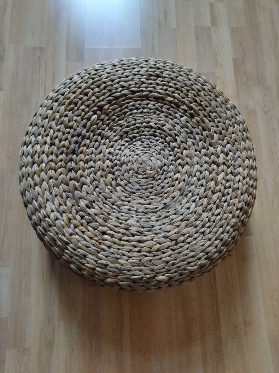 Ikea ALSEDA Hocker aus Bananenstaudenfaser hat Gebrauchsspuren