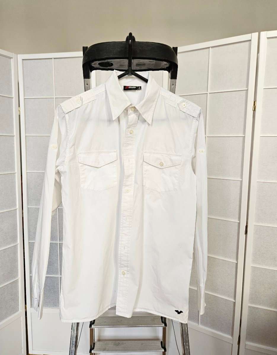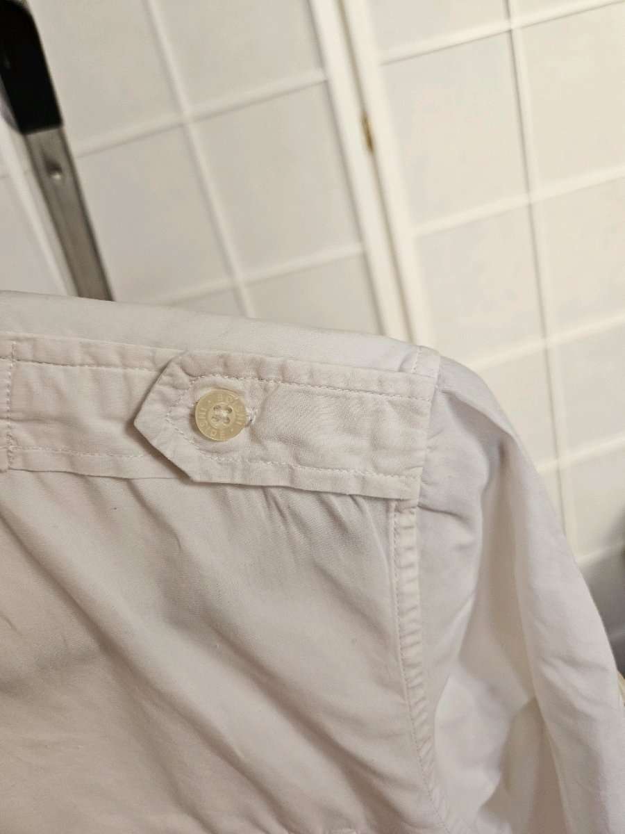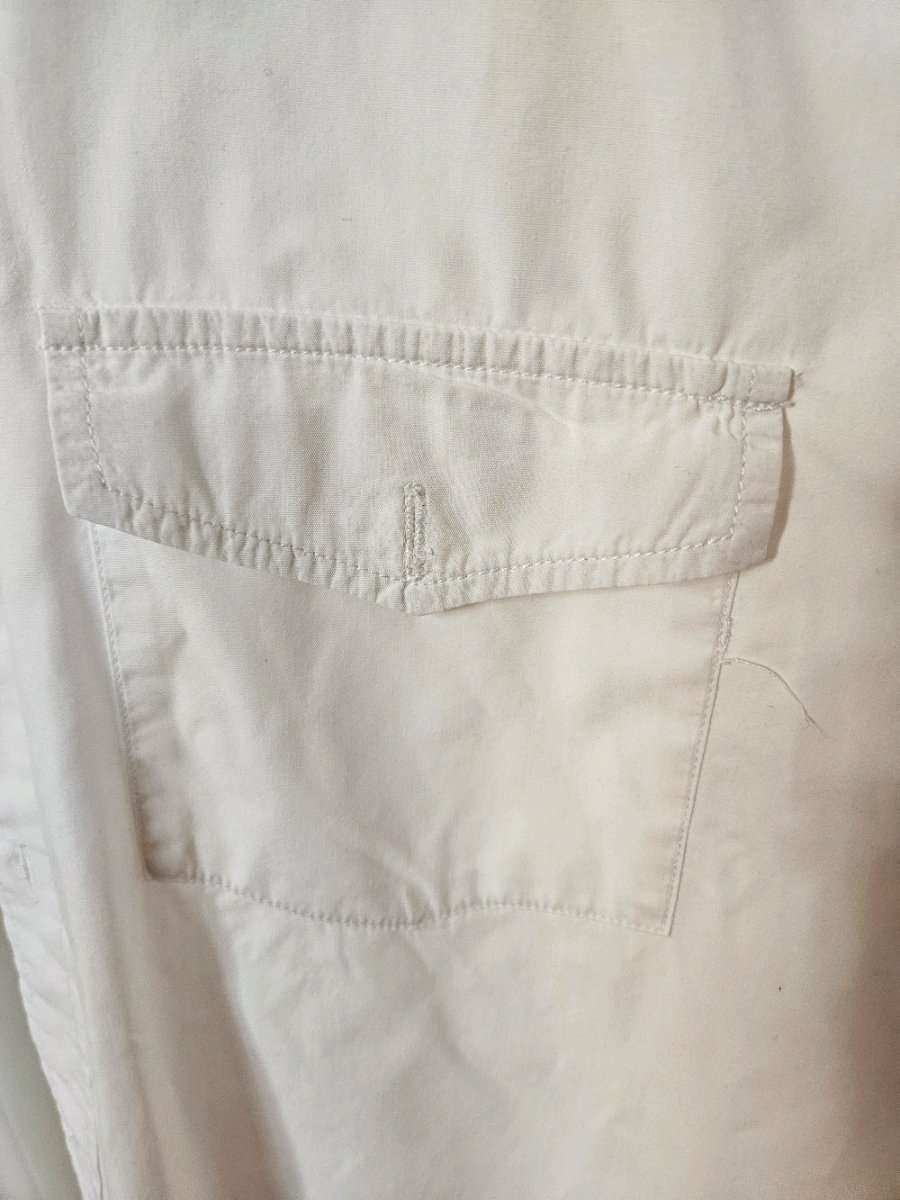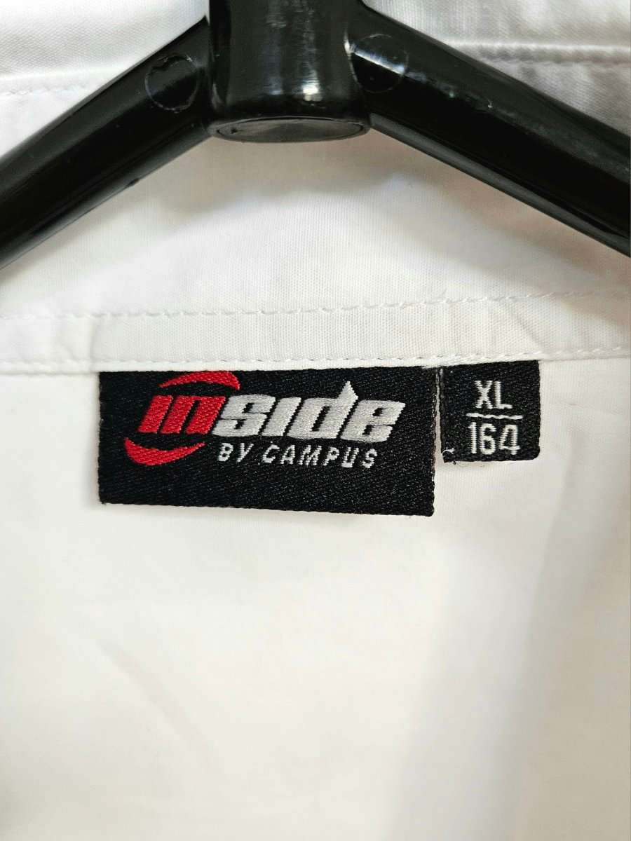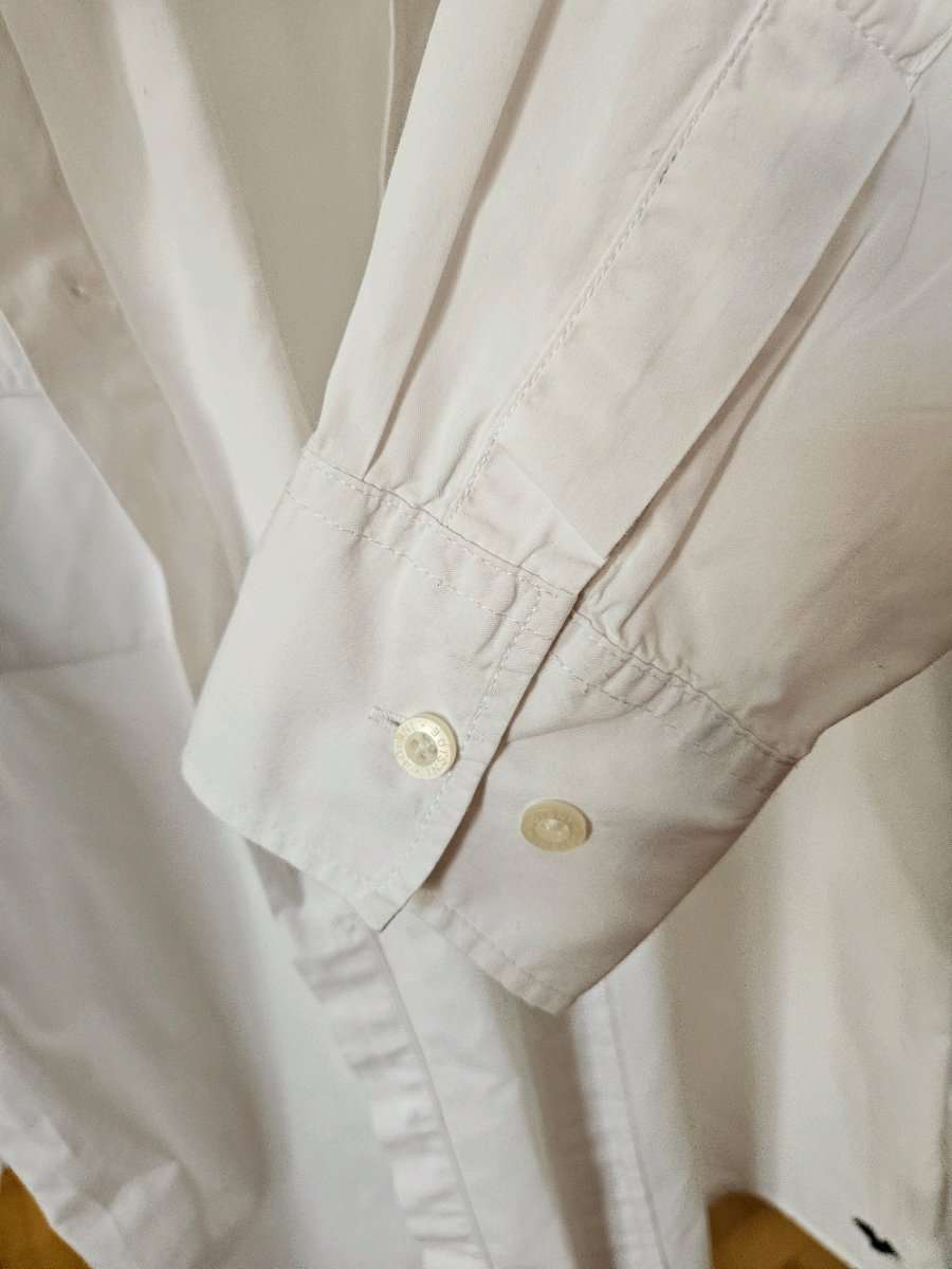Weißes Hemd, Größe 164. 100 % Baumwolle. 2 Brusttaschen. Laschen und Knöpfe zum Hochkrempeln der Ärmel. Kleiner unentfernbarer Fleck ganz unten. Abholung neben Wien Museum/ Karlskirche oder PayLivery.