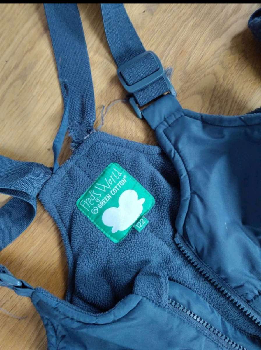 Habe hier noch 3 Ski Hosen Freds World 116 und eine mit 122 , Vaude 122/128. Ausschließlich bei den Saumabschlüssen Beine müssten es etwas repariert werden oder überklebt mit einem Saum. Ein Gummi müsste bei 122 vernäht werden. Ansonsten perfekter...
