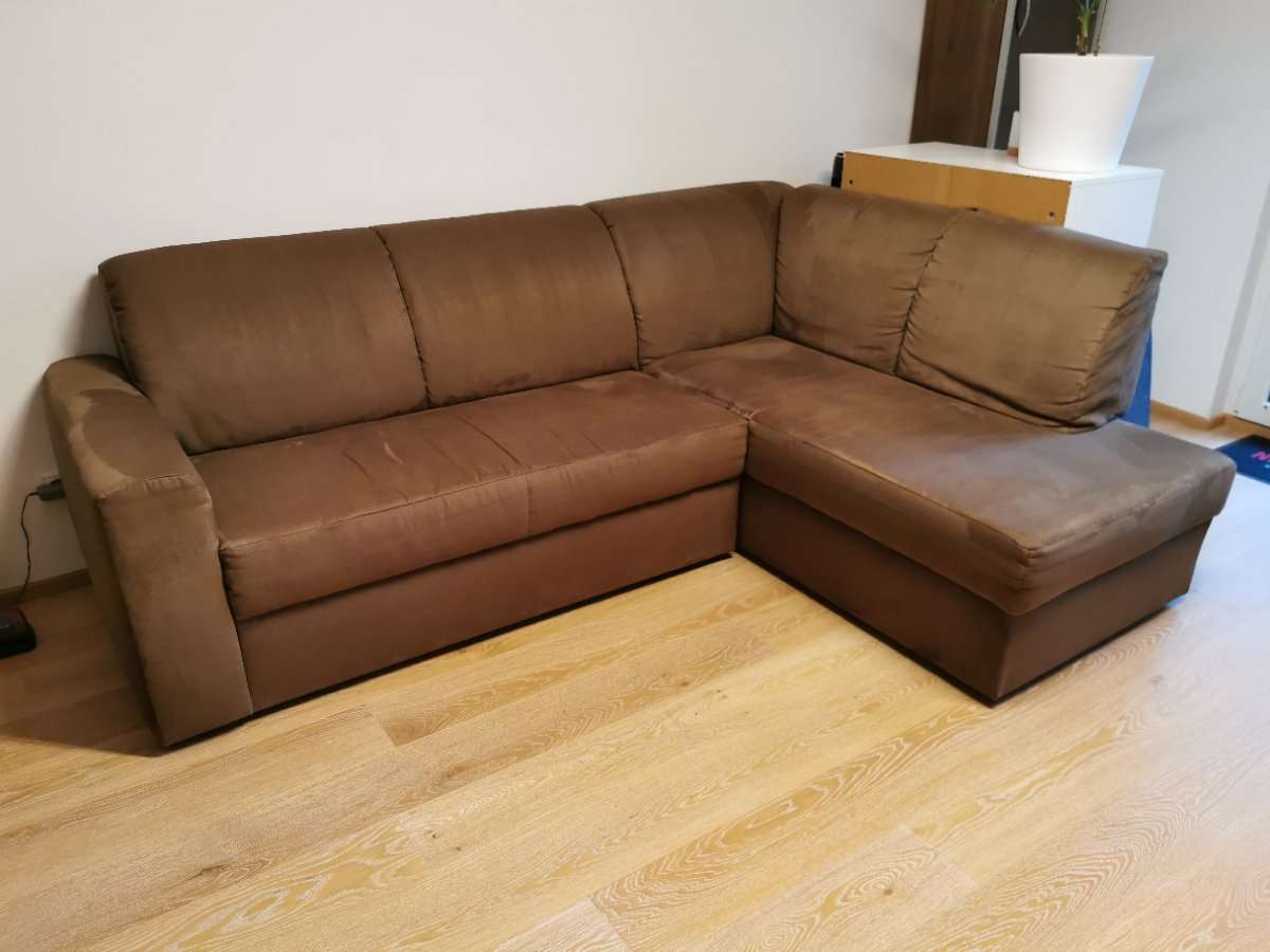 Abholung ab 6. April möglich. Verschenken unsere Eckbank aus pflegeleichtem Velour. Sorgfältig gepflegt, tierfreier Nichtraucherhaushalt. Kann für den Transport in zwei Teile getrennt werden. Maße: ca. Länge 223 x Breite 164 cm Selbstabbau und...