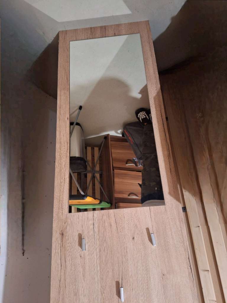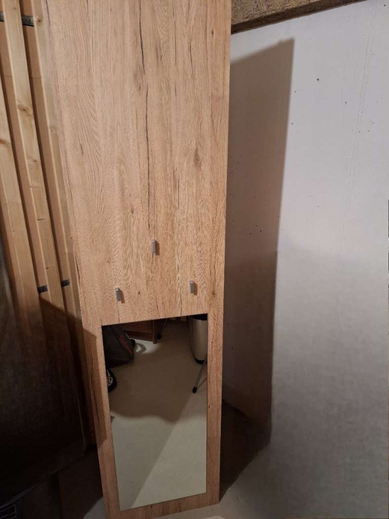 Garderobe gebraucht, zum an die Wand hängen. Schrauben sind dabei. Mit Spiegel. 2m hoch, 50cm breit, 29cm tief.
