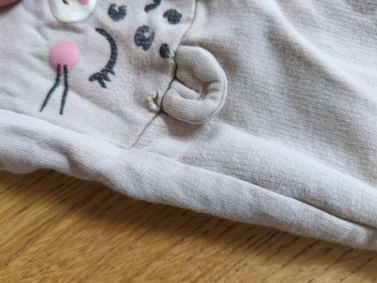 Angeraute Leggings mit schlechtem Druck und kleinem Loch in einer Hose , dass aber nur oberflächlich ist. Siehe Foto. Tierfreier-Nichtraucherhaushalt.