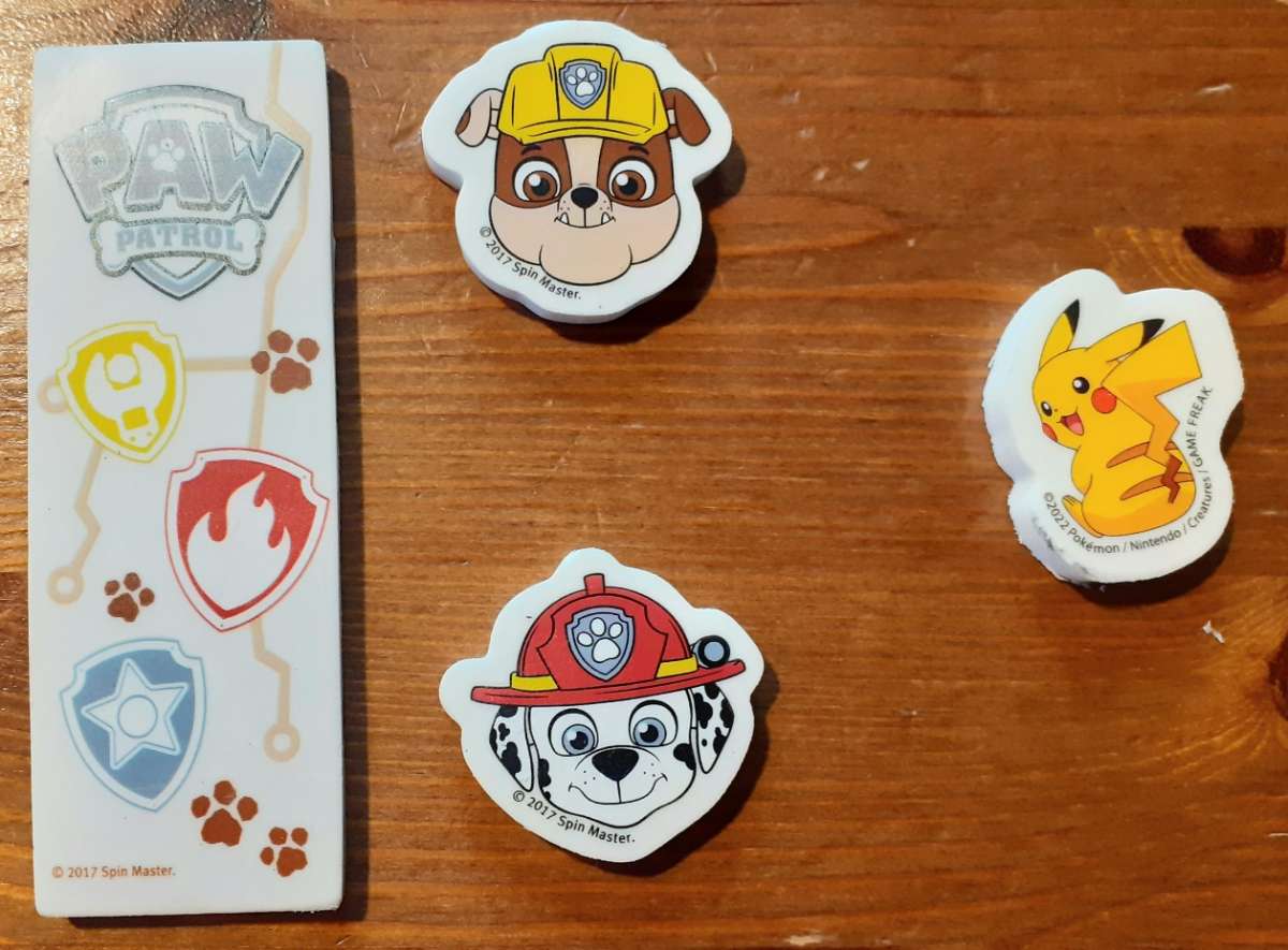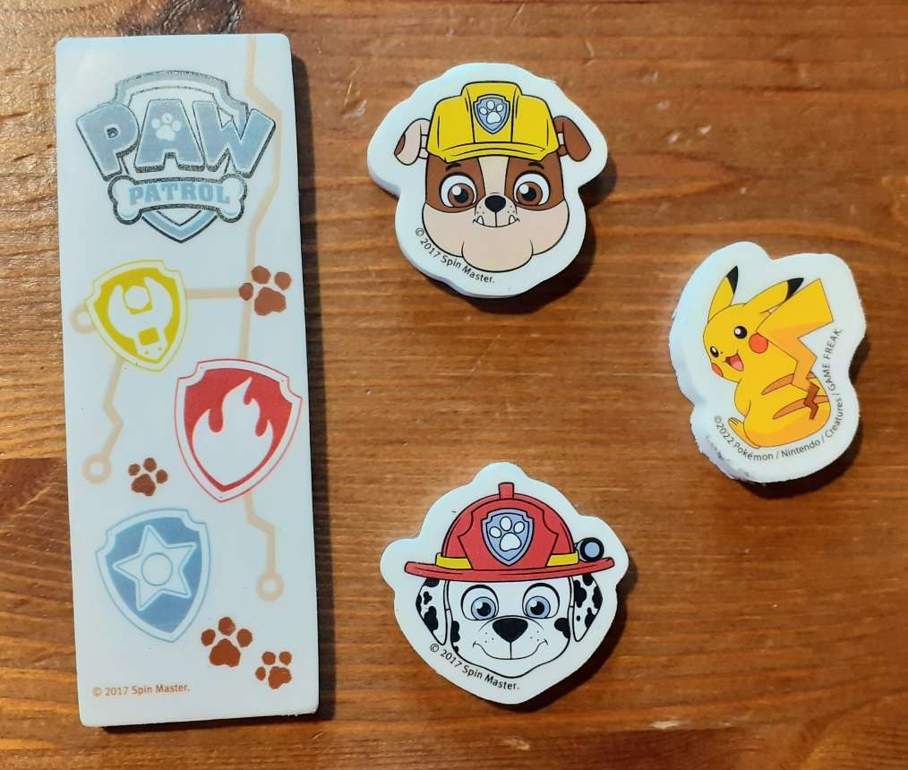 3 Paw Patrol Radiergummis und 1 Pokémon Pikachu Radiergummi abzugeben. Privatverkauf, kein Umtausch, keine Rücknahme, keine Gewährleistung. Nichtraucherhaushalt ohne Tiere. Bitte beachten Sie auch meine weiteren Anzeigen.
