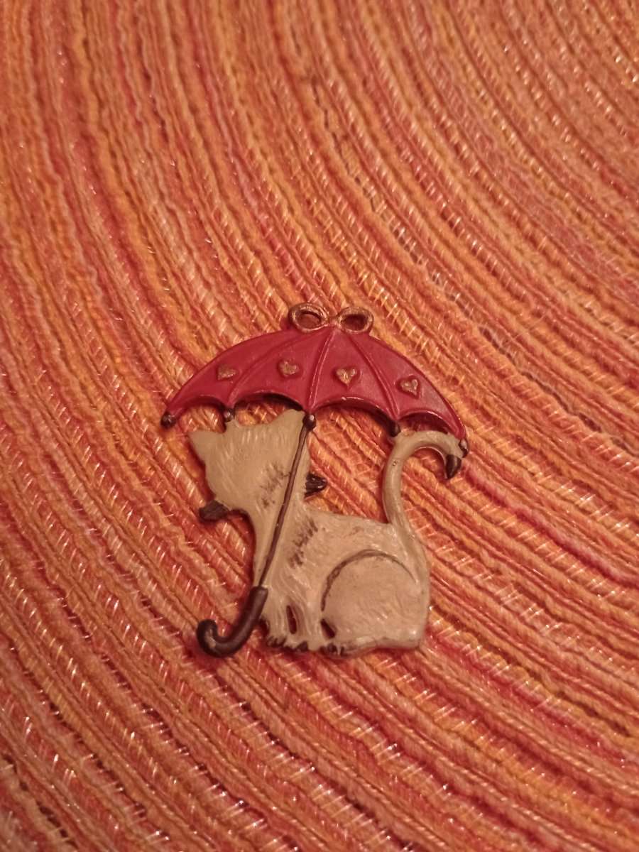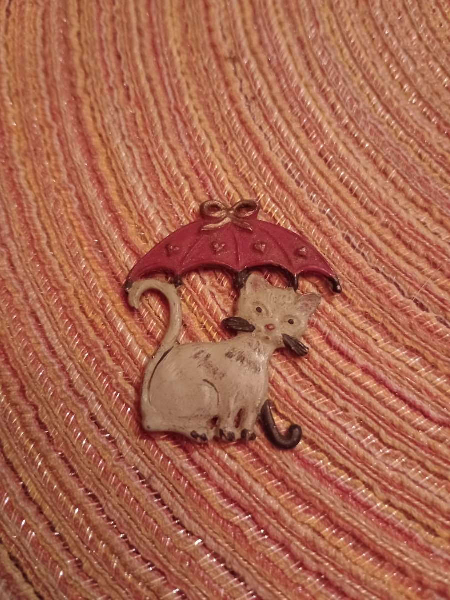 Hübscher alter Anhänger für Katzen Fans , Katze unterm Regenschirm,zu verschenken
