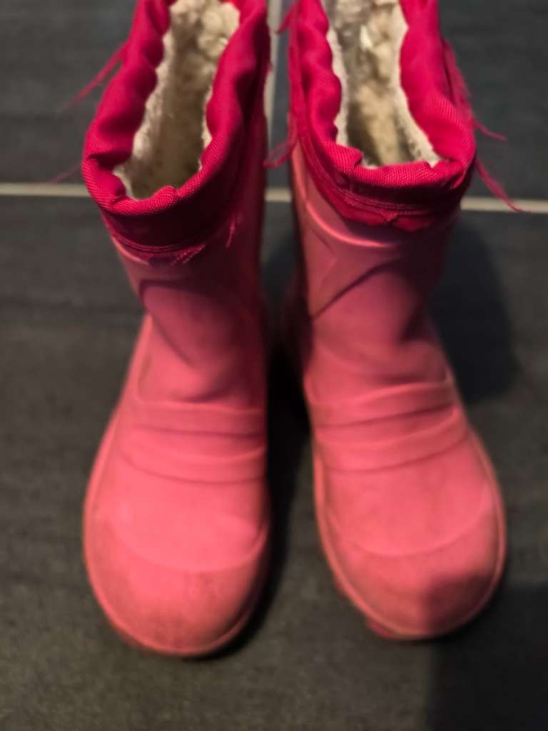 Zu vergeben sind Kinder Schuhe 3 Paar! Schwarze Schnürstiefel Größe 34 Pinke Stiefel Größe 24 Weiß blauer Schuh 29 Sandalen eher für Babys!