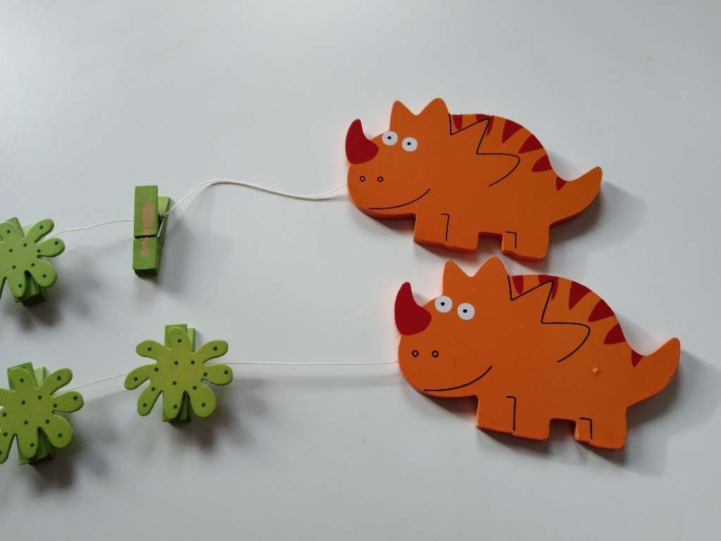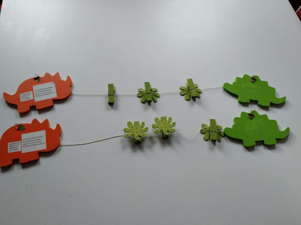 Verschenke 2 Stk Foto oder Bilderleine Dino Die Dinos sind mit einem Bilderhaken versehen,die 3 Klammern zum Befestigen von Fotos oder Bildern. Bei einer Klammer fehlt leider die Dekoblume (am Foto ersichtlich) Abholung in 1200 Wien möglich. Versand zzgl...