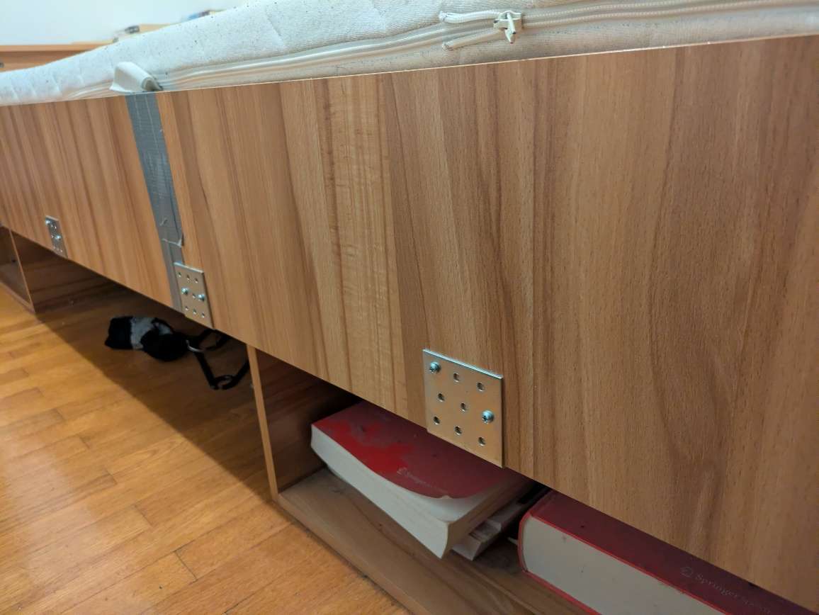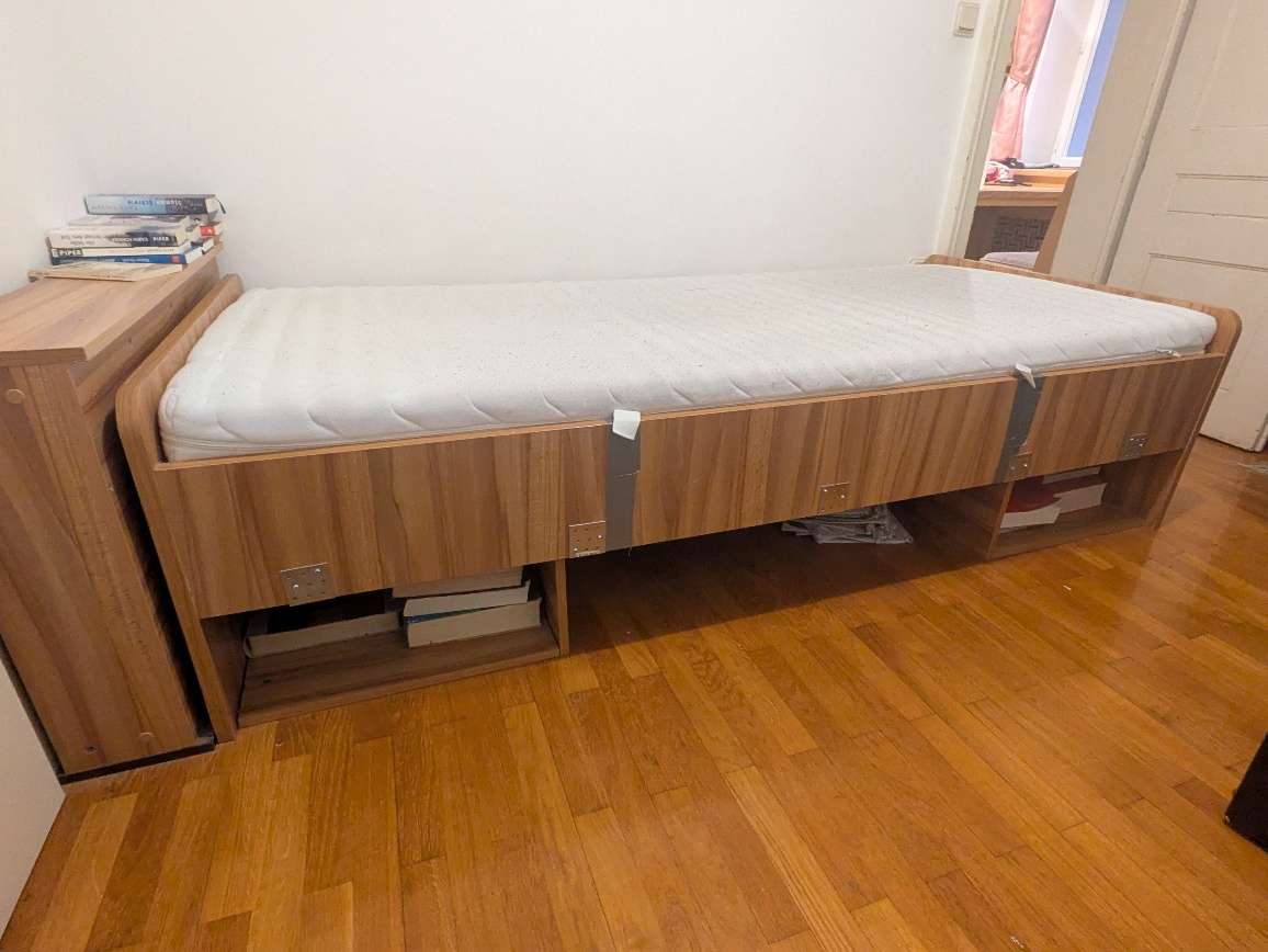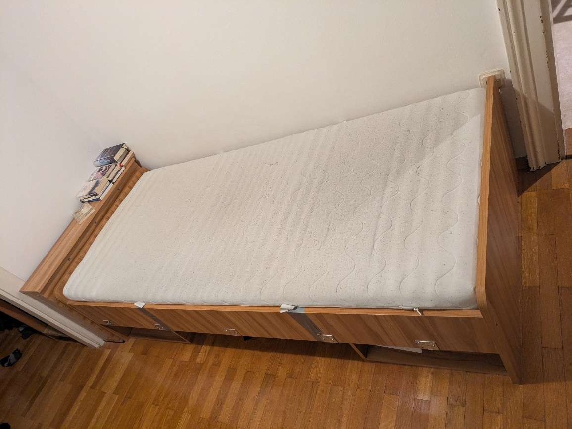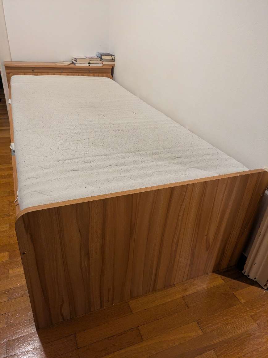 Bett 206×95 zu verschenken mit Matraze und Lattenrost Wurde mit Eisenwinkel verstärkt, also am besten so mitnehmen ohne zerlegen NUR SELBSTABHOLUNG
