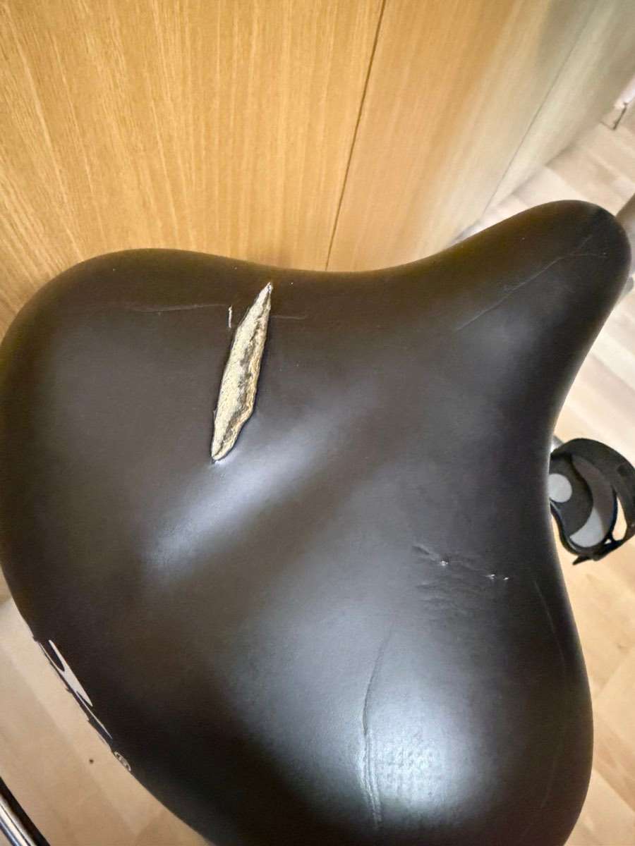 Gut erhaltener Hometrainer, Display und Pulsmesser funktionieren, Riss am Sattel (siehe Foto)