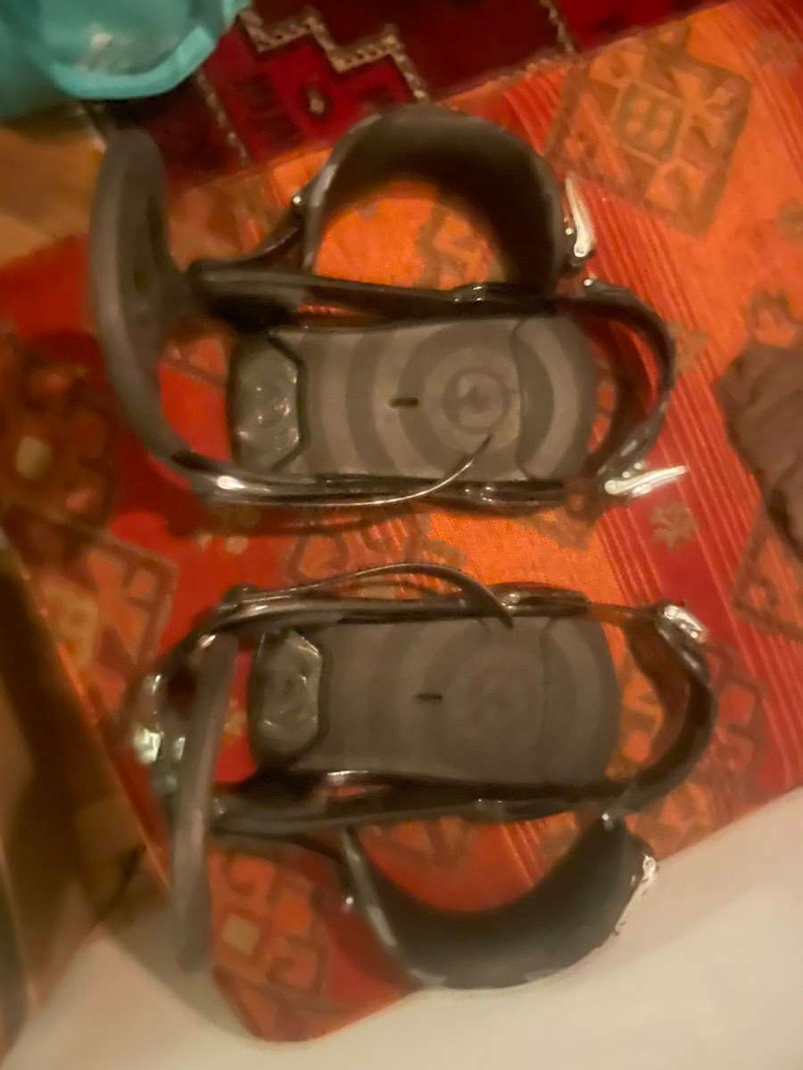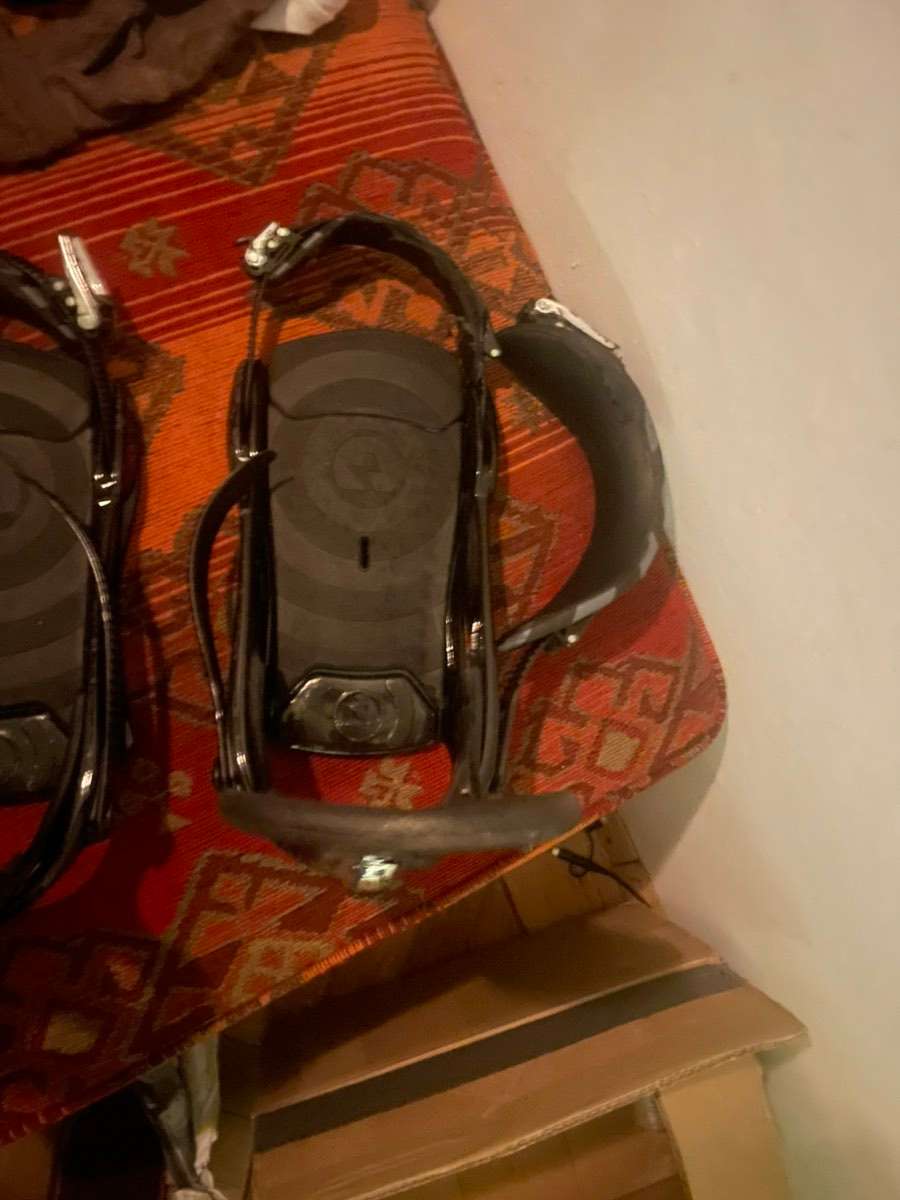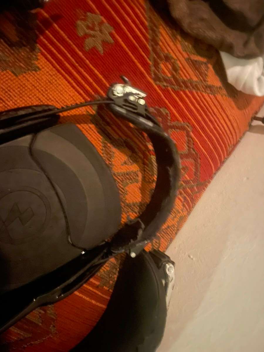 Snowboardbindung, da ich mir eine neue geholt habe. Starke Gebrauchsspuren, grundsätzlich noch möglich damit zu fahren. Größe: 42/43 Schwierigkeiten die vordere schnalle links zu zu machen.