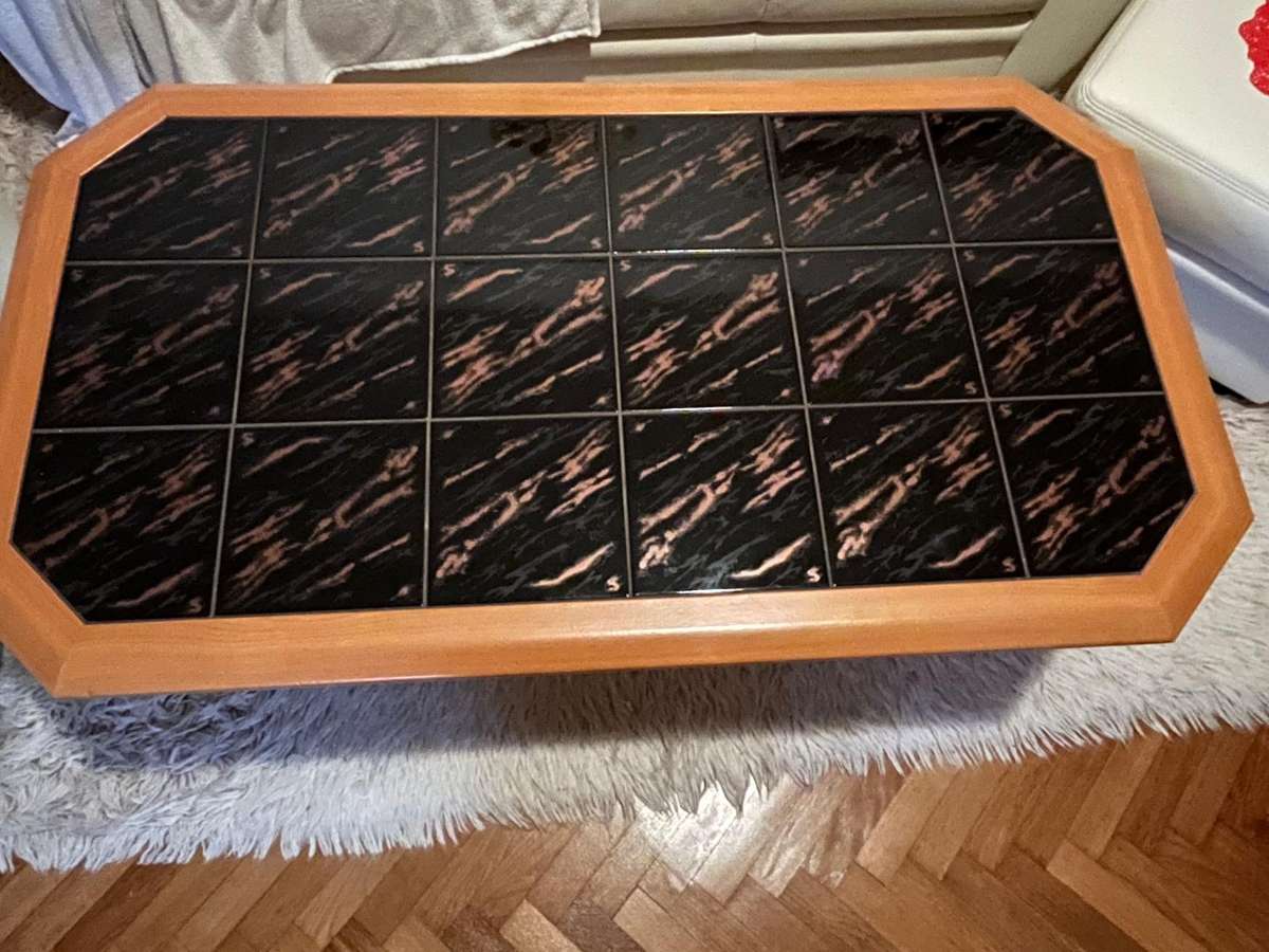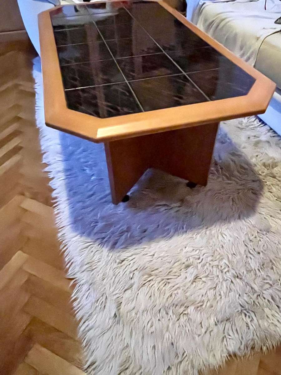 biete Couchtisch: Keramikfliesen als Tischplatte absolut unbeschädigt, neuwertig 1,35 m lang, 75 cm breit, 49 cm hoch auf Rollen ca 45 kg