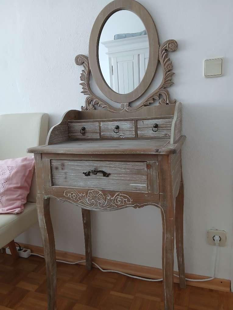 altrosa Kosmetiktisch im Vintage-Stil, Vollholz mit Spiegel, b=60cm, t=42cm, h=145cm (ohne Gewährleistung)