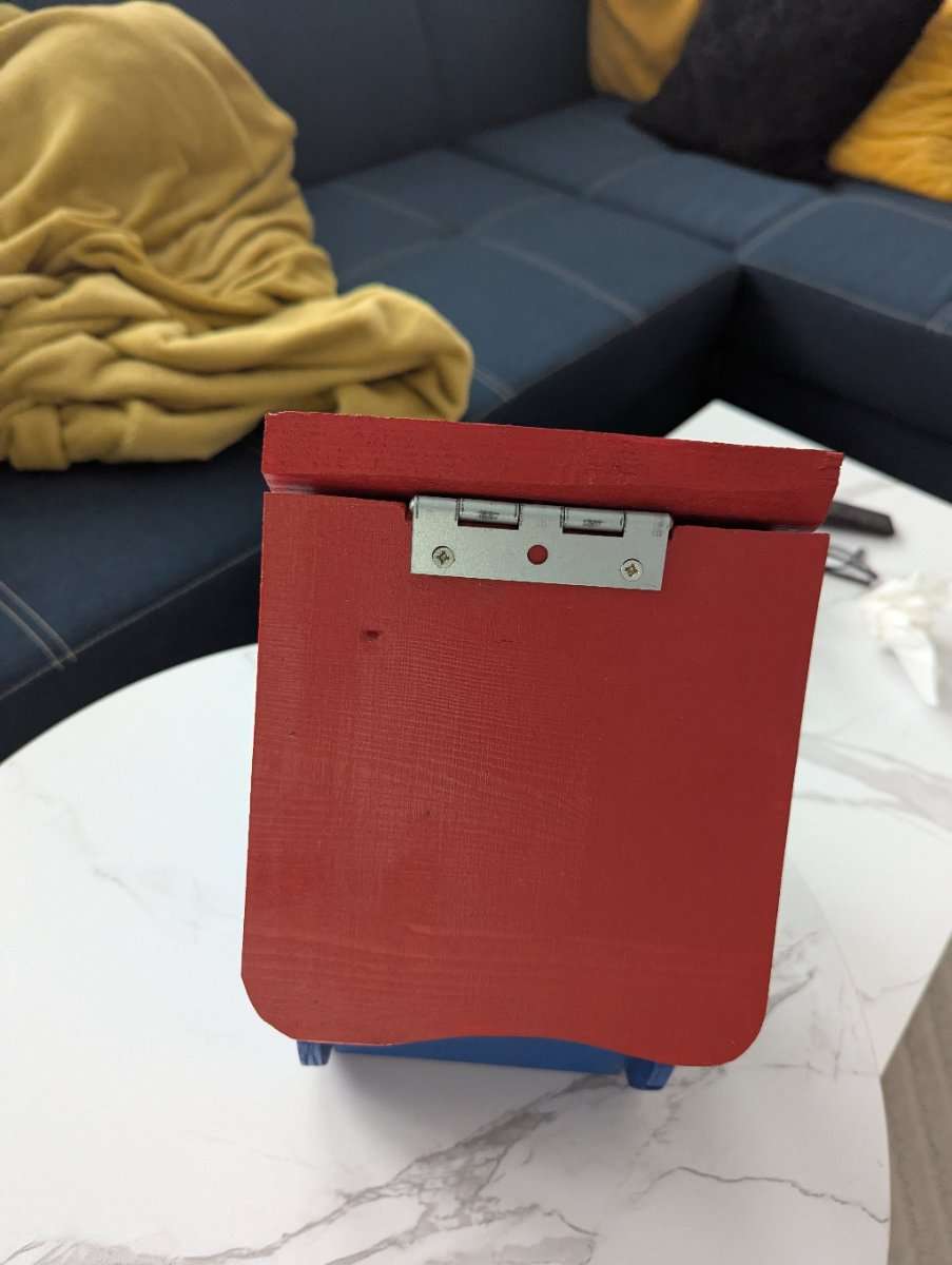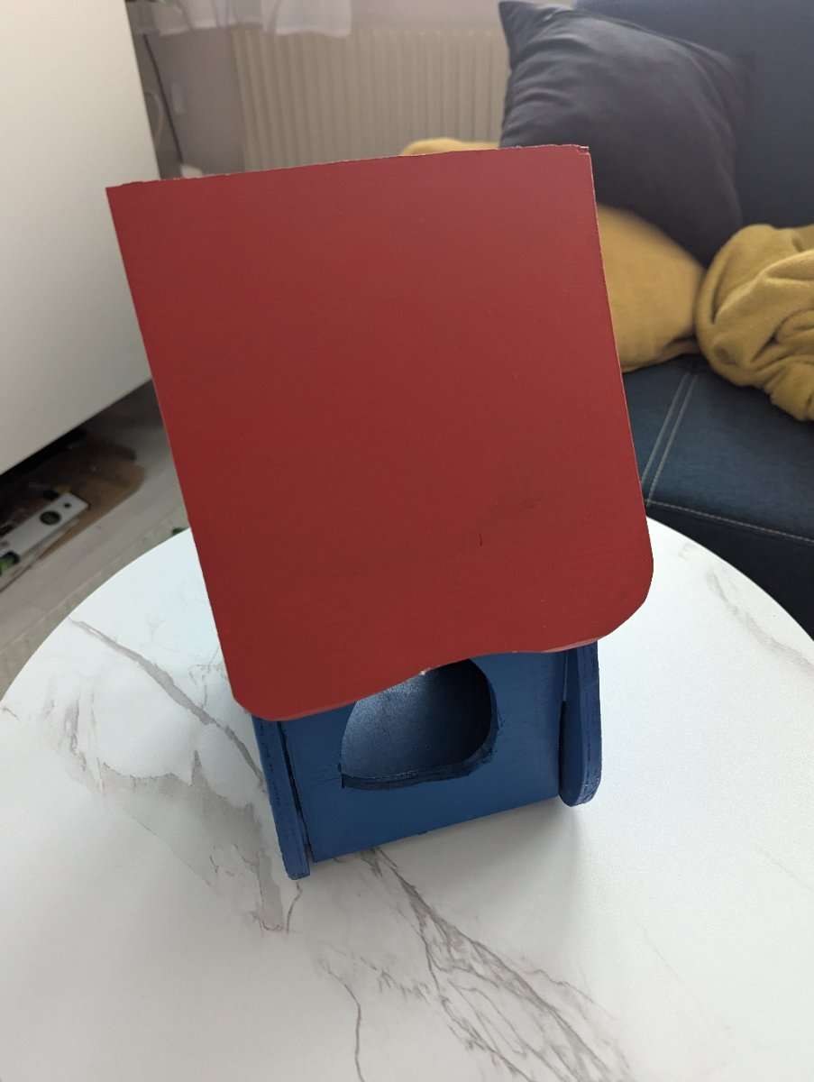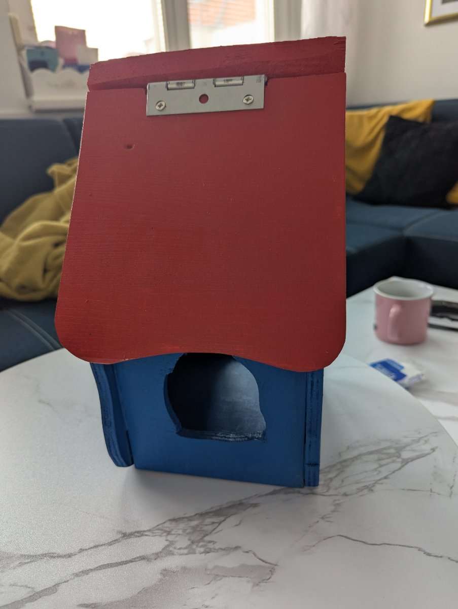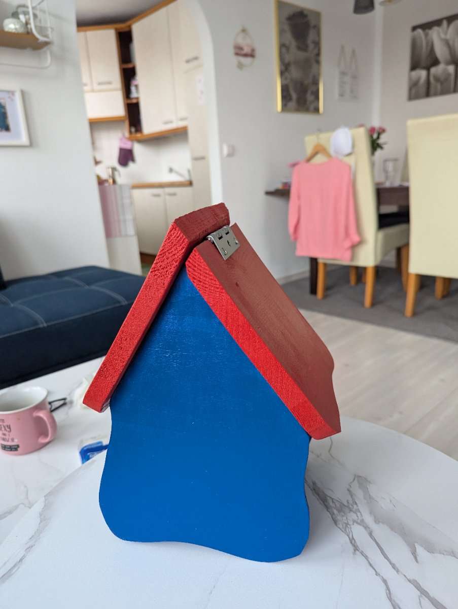 Vogelhäuschen zum selber weiter gestalten oder in rot/blau übernehmen. Mit ausklappbaren Dach. B: ca. 22cm H: 31cm T: 17cm