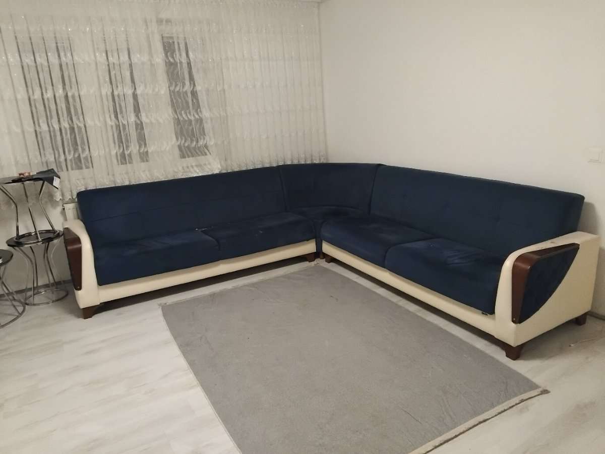 Große ausziehbare Couch in grau/ schwarz