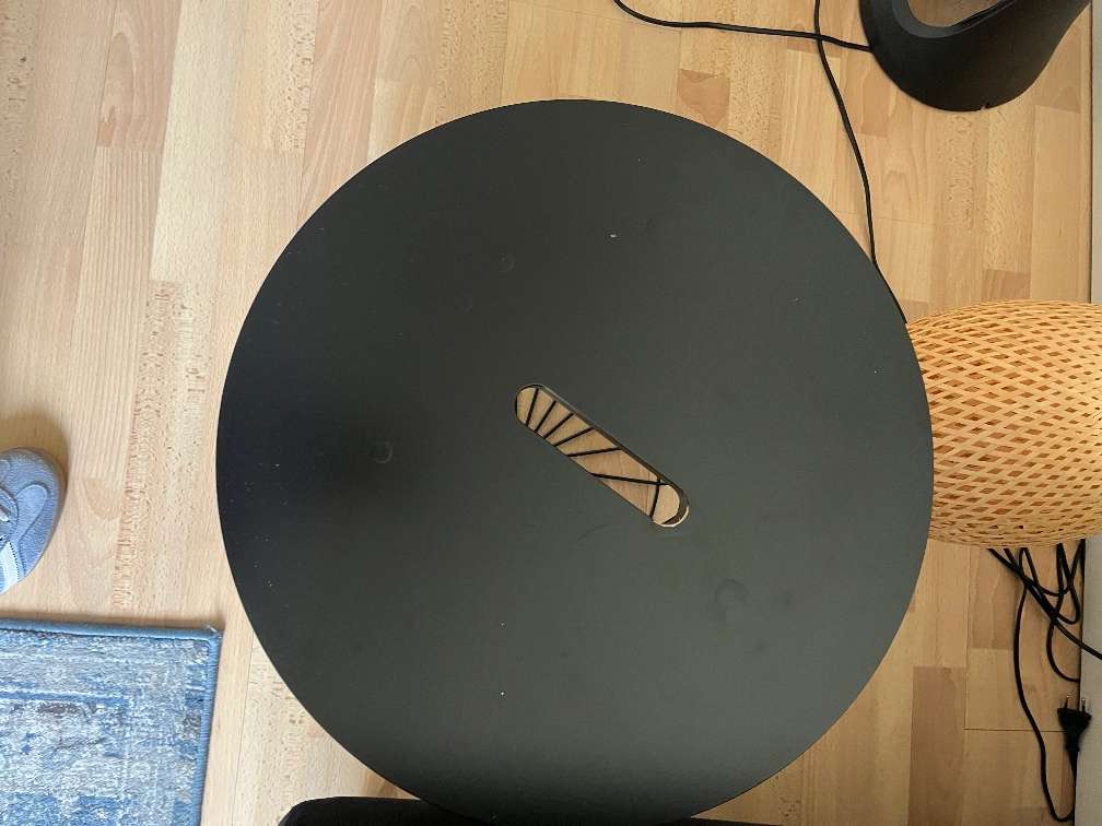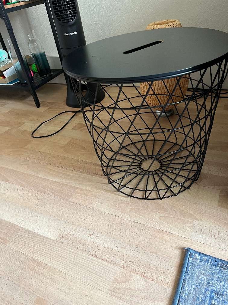 Kvistbro Aufbewahrungs/Couchtisch. Das Furnier auf der Platte macht eine Blase, kann evtl abgeschliffen und neu lackiert werden. Abholung in 1140 Wien. Privatverkauf, keine Gewährleistung.