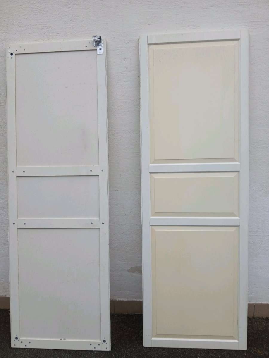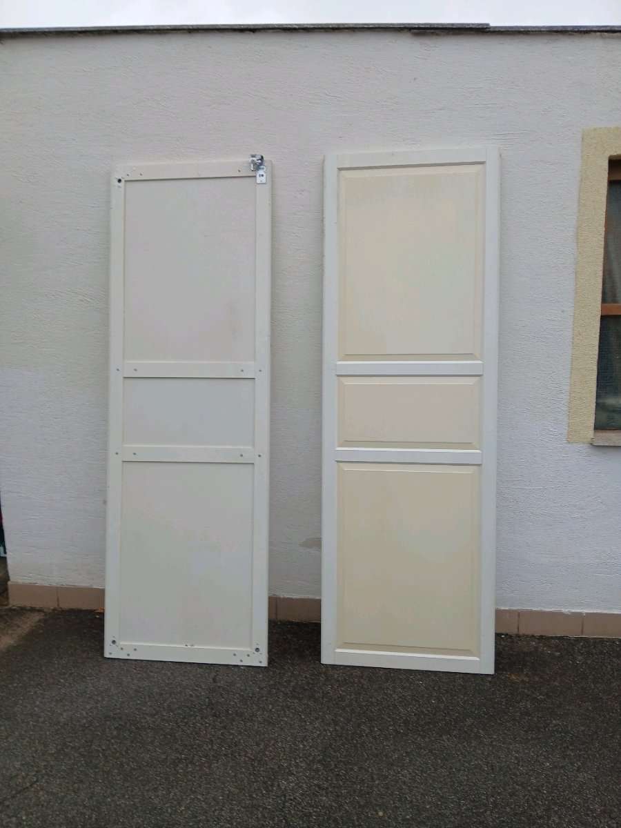 77x232 cm 20€/Tür, inkl schienen und beschläge, schon gelblich verfärbt, Rahmen ist aus alu