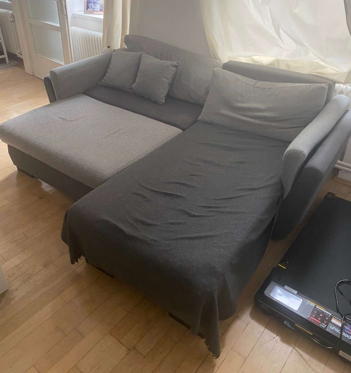 Schlafsofa zum Ausziehen. Abzuholen im 16.Bezirk Wien in der Wurlitzergasse, nähe Wattgasse/Wilheminenstraße. Länge 230cm x Breite 170cm.