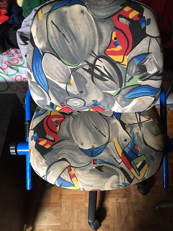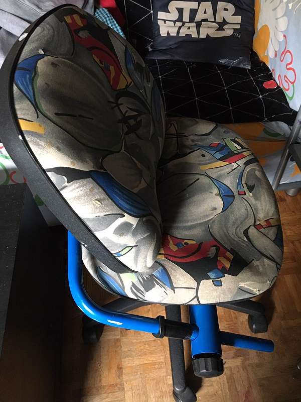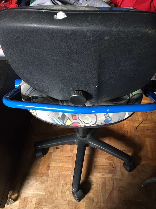 Schreibtischsessel für Kinder der mitwächst.Auf der Sitzfläche und Lehne sind sind ein paar Flecken und Lehne hat kleine Risse.