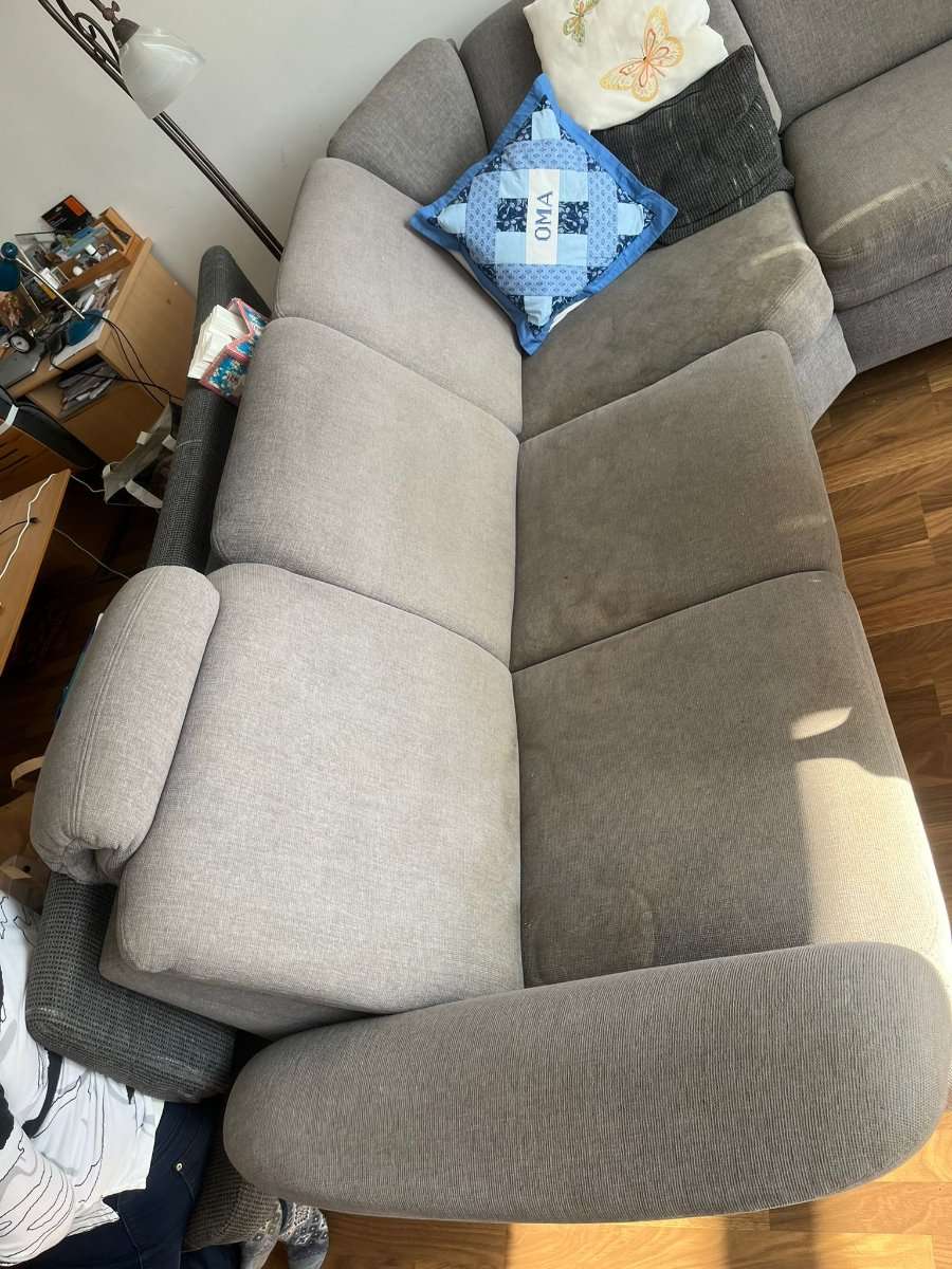 Große Wohnlandsschaft 3.20m, 2.40m, 1.65m mit Doppelbettfunktion und Bettzeugraum. Zusätzlich ein Relaxsessel