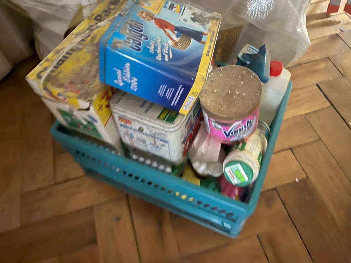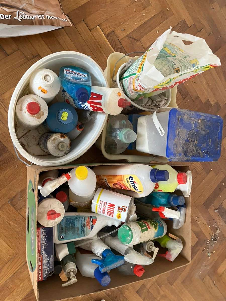 Hallo ich habe eine Kiste mit Metallschrott , 3 Kisten diverse Reinigungsmittel und Waschmittel teilweise/gebraucht und abgelaufen eine Arbeitsplatte zu verschenken heute 21:00 - 22:00 1070 Wien