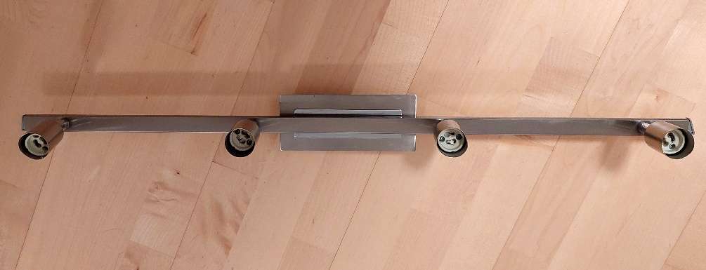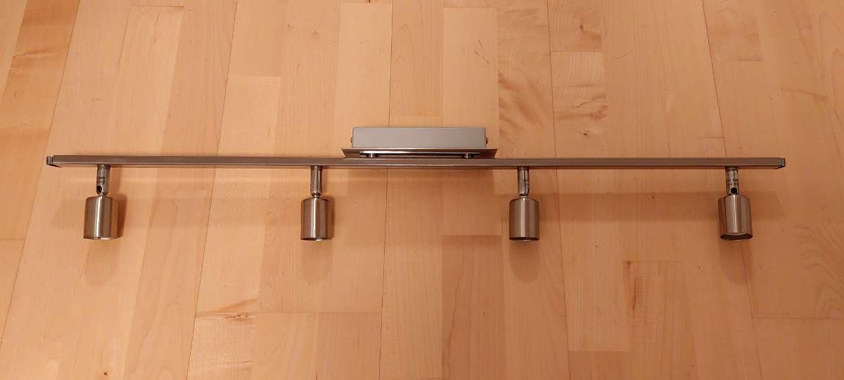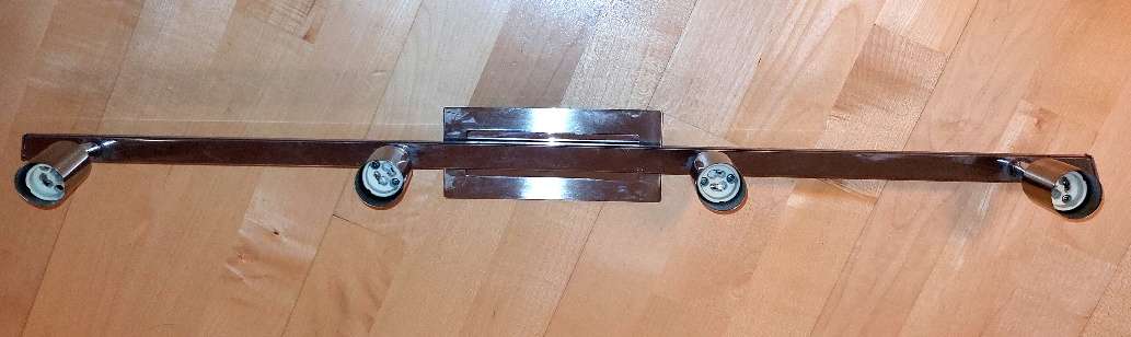 Verschenke diese Lampe für GU 10 Spots. Eine der Fassung ganz außen ist kaputt, die anderen funktionieren noch einwandfrei. Ich habe auch passende Halogen-Spots (willhaben-Code: 1948250841)