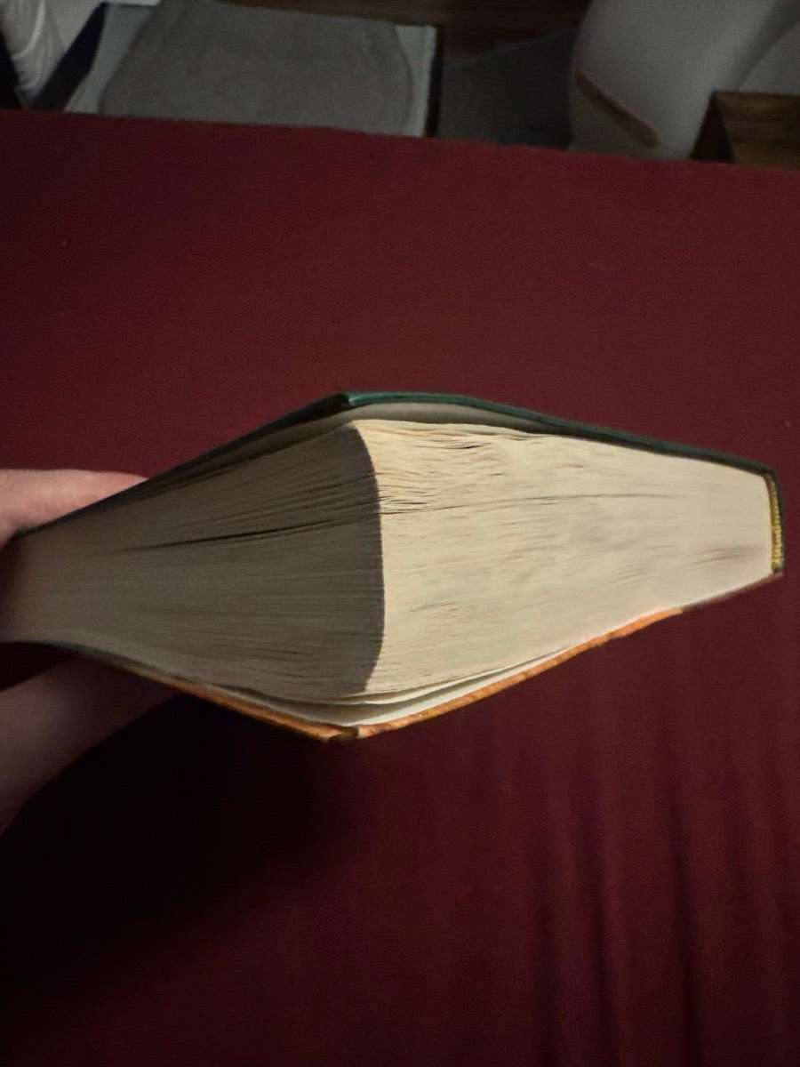 Das Buch hat leider Wasser gezogen, deswegen beult sich die untere rechte Kante.