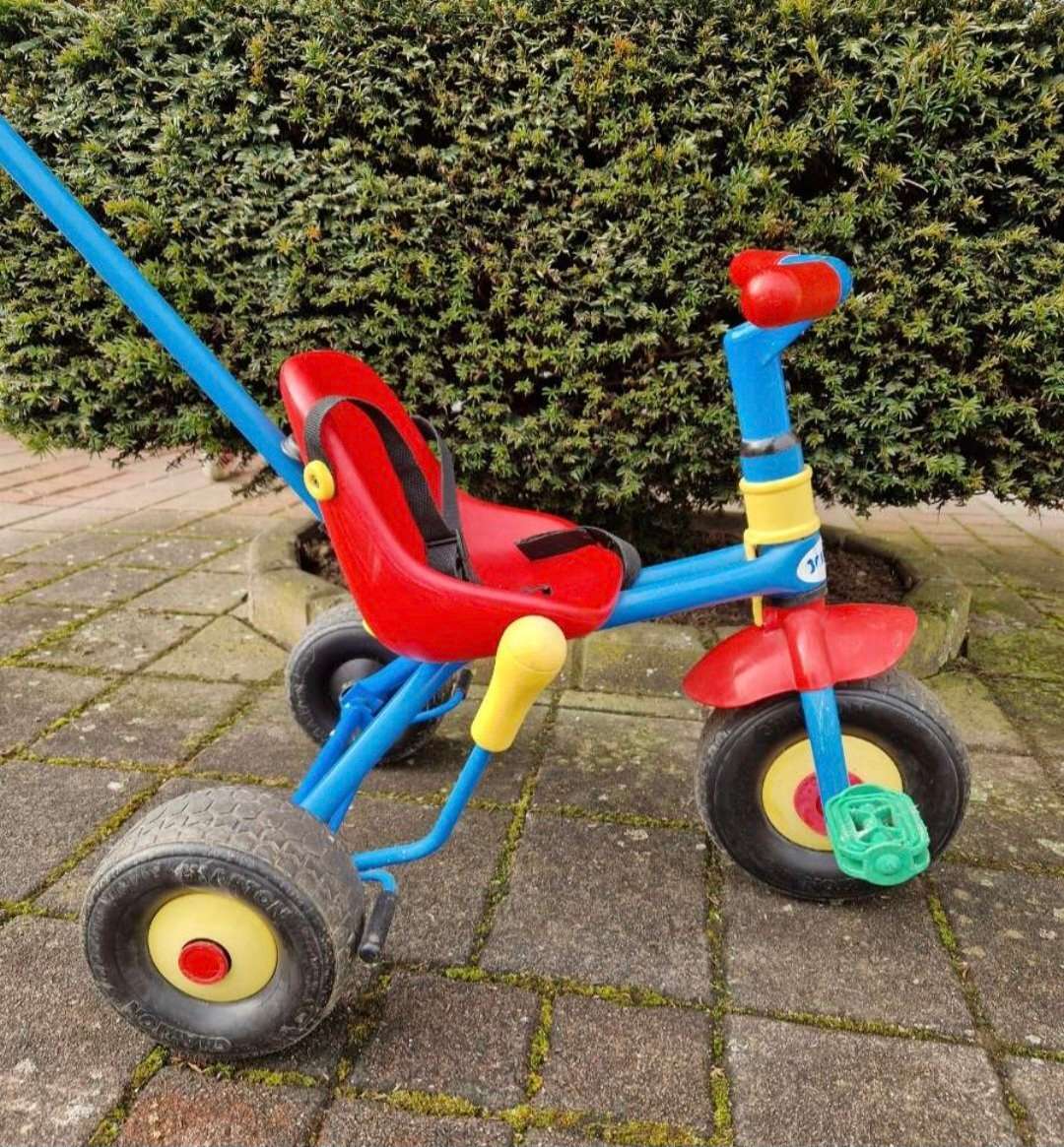 Dreirad mit Hartplastikreifen, Stange und Gurt